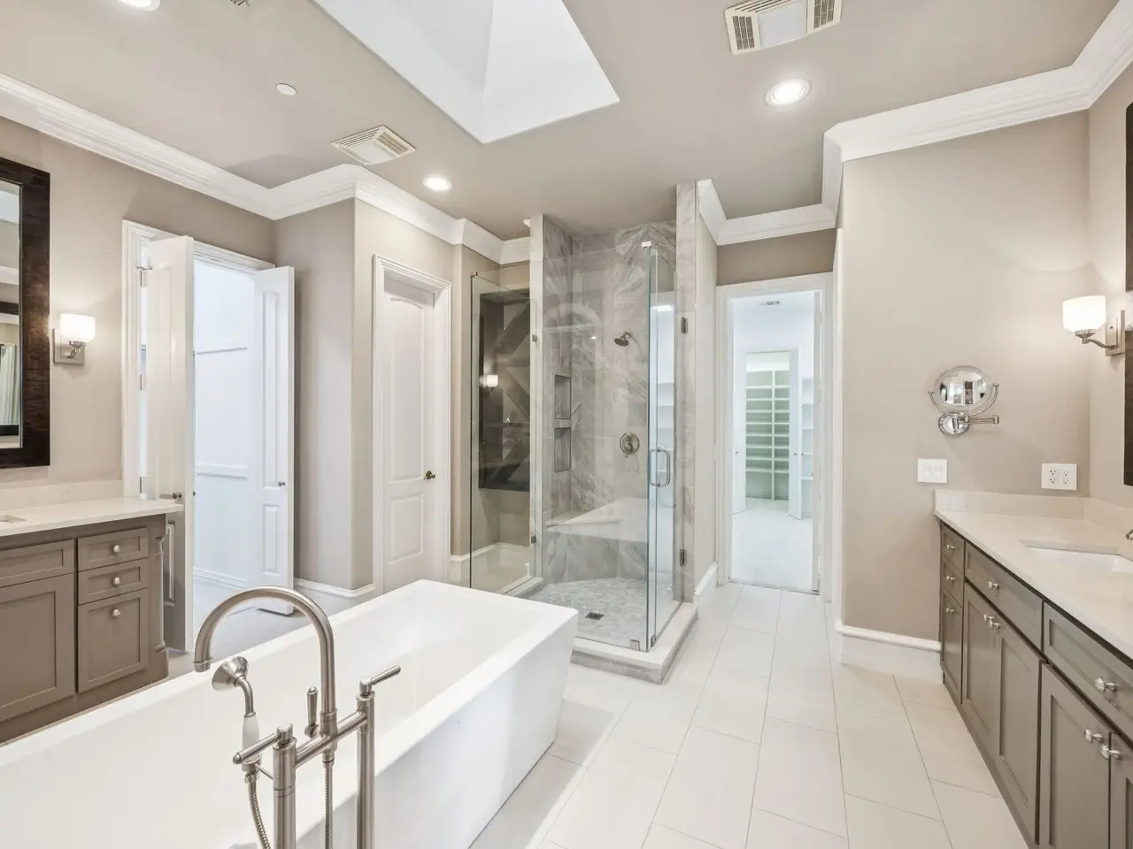 A rare opportunity in the prestigious gated Stonebriar Country Club Estates. Set on a .40-acre interior lot, this custom 6,792 sq ft luxury home blends timeless architecture, privacy, custom finishes & luxurious design. Enter through a private gated drive w-porte-cochere, circular driveway, & split 3-car garage. The secluded backyard is a resort-style retreat featuring lush landscaping & a pool & spa by Hauk Custom Pools. The flexible layout offers 5 bedrooms, 6.1 baths & 7 living areas designed for entertaining, everyday living, or multigenerational needs. The first floor includes a Media room w-bar, 3 Living Areas (including a Billiards Room), Dining, extended Entry (perfect for your prized piano), Executive Study w-fireplace, a tornado safe room & Primary & Guest Bedroom Suites. The Primary Suite functions as a private wing w-Living Room w-fireplace, fitness room w-sauna, dual oversized closets (there's even a shoe closet!), dual water closets & an updated spa-style Bath. A secondary Bedroom w-Ensuite bath on the main level is ideal for guests or multigenerational use. The Chefs Kitchen features premium Viking appliances, leathered granite, blt-in Thermador refrigerator, custom cabinetry & opens to a light-filled family room w-updated elongated fireplace and offers slider doors opening the living area to the pool, spa and gorgeous private landscaped backyard. Upstairs offers a loft Game Room, two Guest Bedrooms w-Ensuite Baths, and a fifth bedroom w-full bath & walk in closet (currently used as a second media room). Additional highlights: double wrought-iron front doors, tankless water heaters, central vac, plantation shutters, wide-plank hardwoods, epoxy-coated garages, mud room, one garage has AC, and concrete safe Tornado room. Prime location near world class golf at Stonebriar Country Club & featuring easy access to SH-121, Dallas North Tollway & DFW airport. Quick access to all shopping & dining at Legacy West, The Shops of Legacy, The Star, & Grandscape.