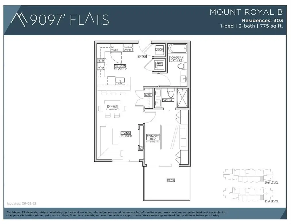 Now offering a limited developer incentive-18 months of HOA dues paid for the next three buyers at 9097 Flats. Resting at the base of Mount Royal in the high-mountain enclave of Frisco, Colorado, 9097' Flats provides Summit County with its most stylish and thoughtfully-appointed residences yet. These condominiums provide owners with spacious homes in an unbeatable location steps from vibrant Main Street shops and minutes from world-class mountain resorts. The building will offer top-tier finishes and amenities that exude understated fashion, style, comfort and connection to nature next door. Sunrise finish package. HOT TUB INCLUDED IN PURCHASE PRICE!