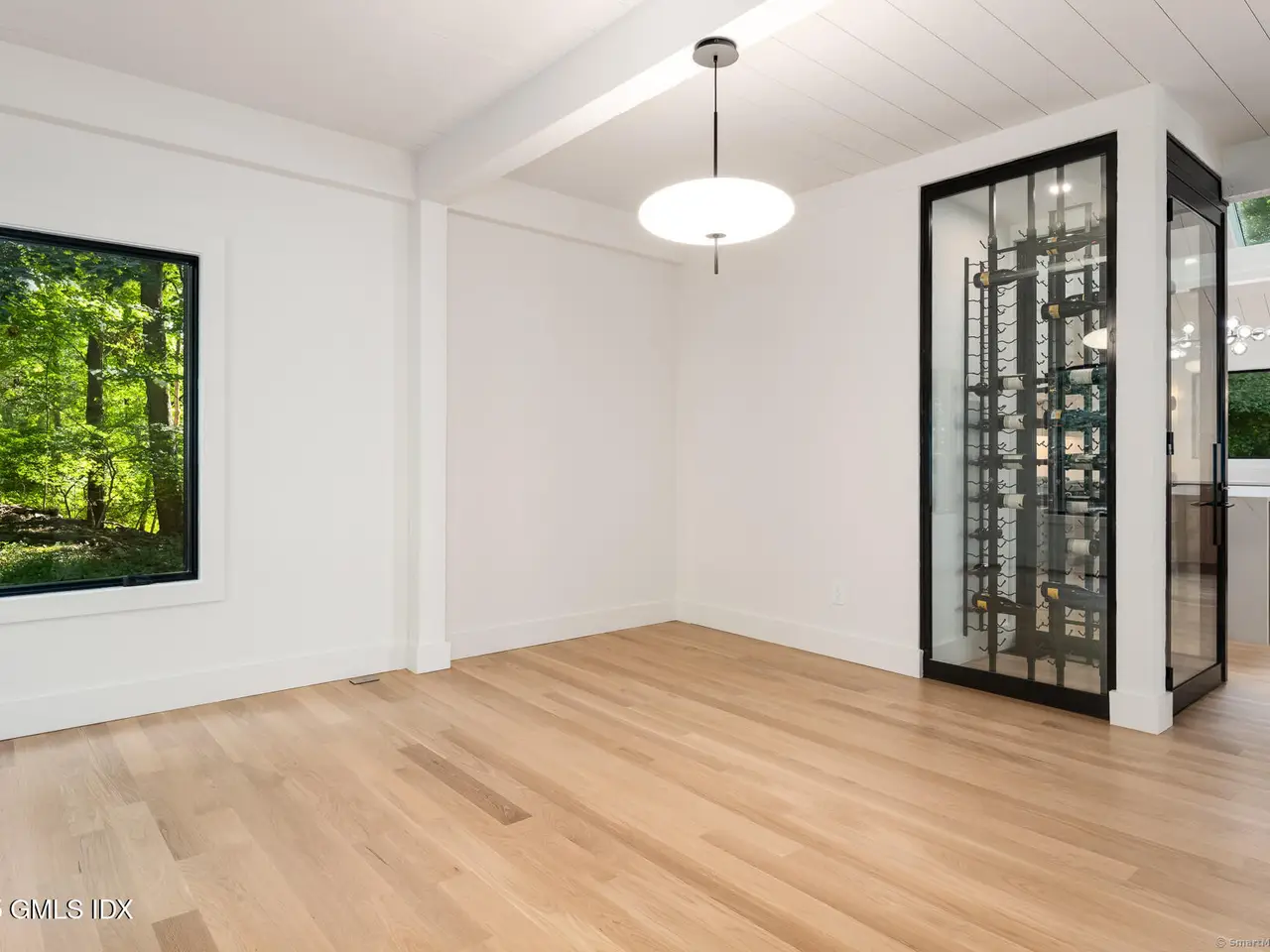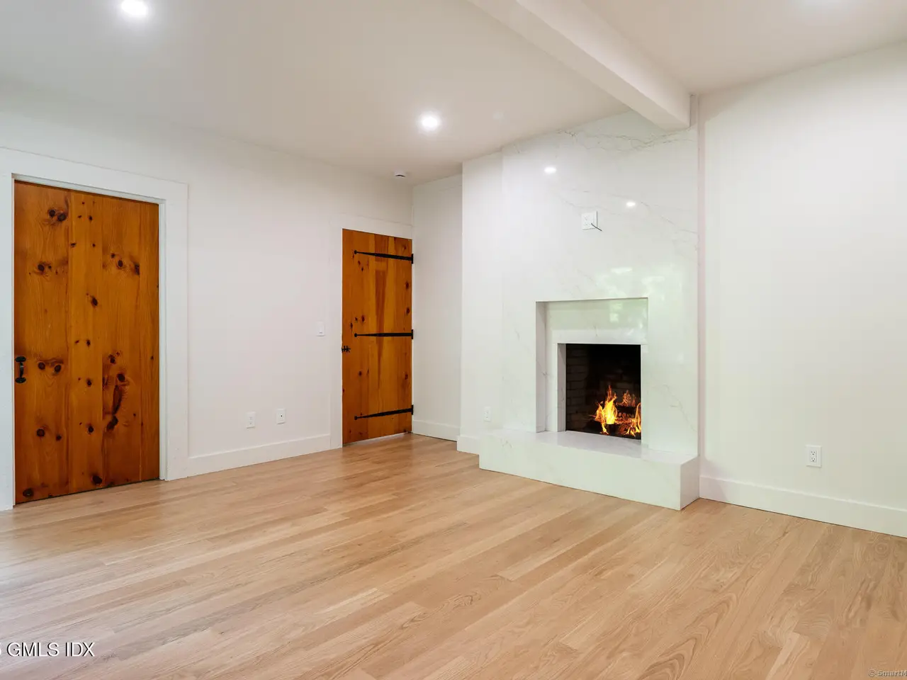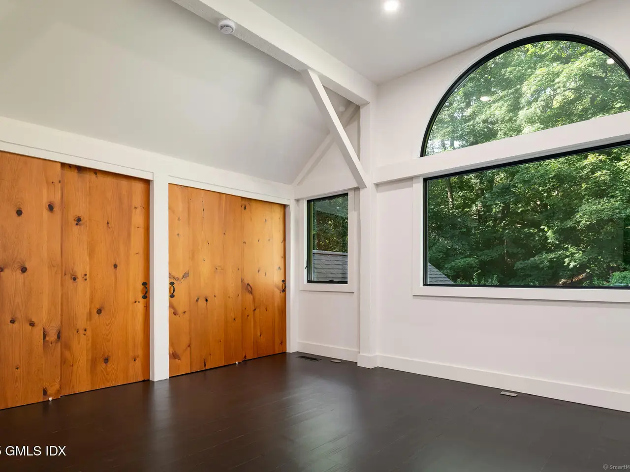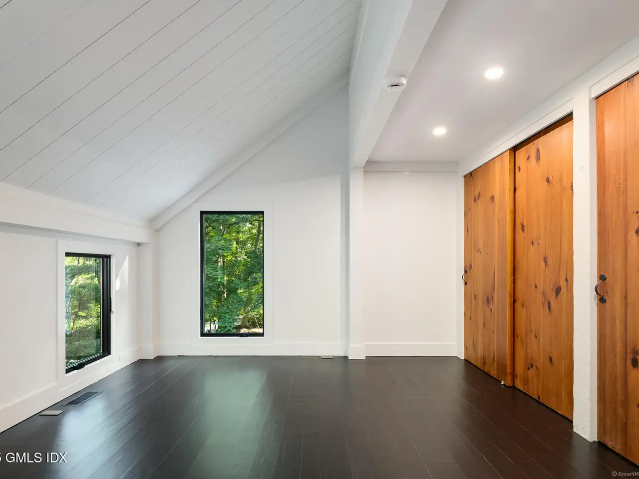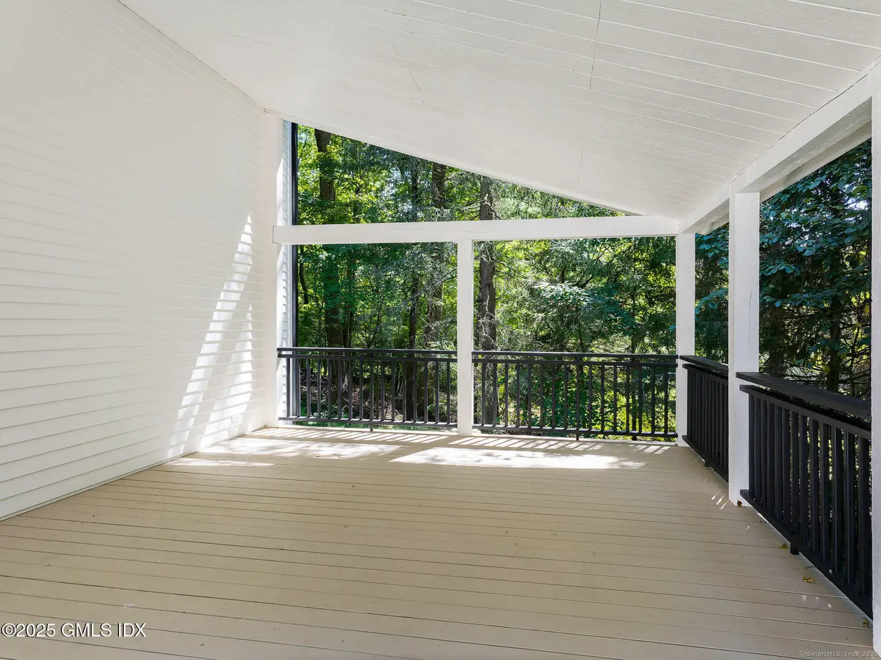 Ideally located near everything, this beautifully updated modern farmhouse-style home offers a perfect blend of comfort and elegance. Situated on a quiet cul-de-sac in Mid Country Greenwich, this private and peaceful residence features a custom design with striking architectural details. The spacious, open-concept living area boasts soaring 24-foot cathedral ceilings, a floor-to-ceiling fireplace, and an abundance of natural light. The gourmet kitchen showcases Quartz countertops with a stunning waterfall island and top-of-the-line appliances, making it ideal for entertaining and daily living. The first floor also includes a formal dining room and an oversized primary bedroom suite complete with a sitting area, fireplace, walk-in closet, and luxurious bath. Upstairs, you'll find two additional bedrooms and bathrooms, all recently updated with modern fixtures and finishes. There's also a large family or playroom, along with a second laundry room. All second-floor rooms are accessed via a spacious wrap-around hall balcony overlooking the main living space. Exposed beams and wrought iron hardware throughout add warmth and character, complementing the natural surroundings of the one-acre wooded property. Enjoy outdoor living on the expansive back deck that spans the length of the house perfect for relaxing or entertaining. Move-in ready and conveniently located close to town and schools, this home is waiting for new owners to enjoy immediately.