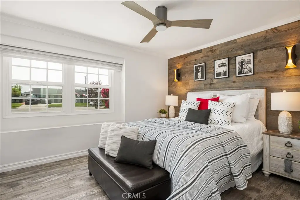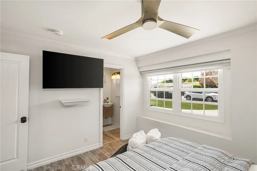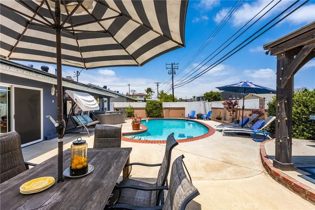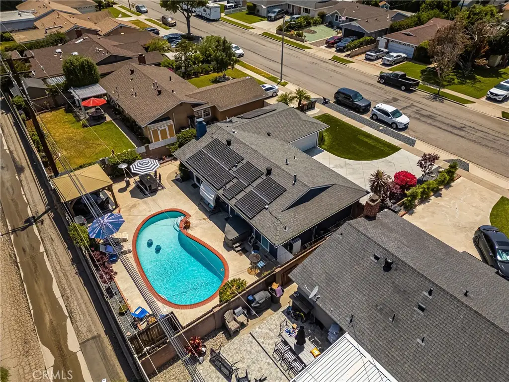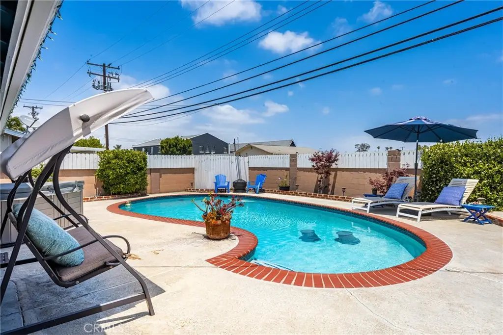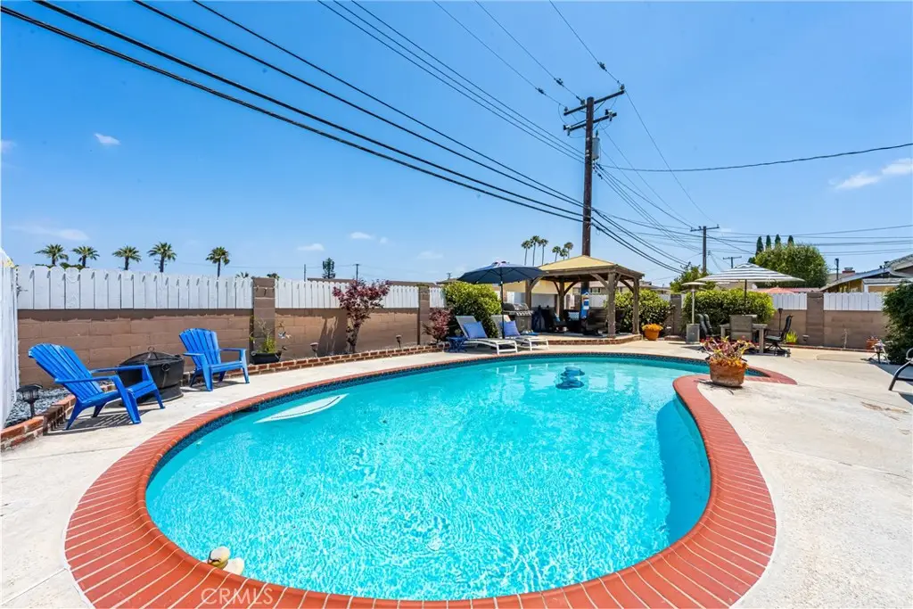 BEAUTIFULLY RENOVATED HOME with all the upgrades in the highly desirable Garden Park community. This turnkey 3-bedroom, 2-bath offers a perfect blend of comfort, style, and functionality starting with its inviting curb appeal that includes new artificial turf, established stone-mulch planting beds, a new main line, and a new driveway. The home is move-in ready with continuous vinyl flooring throughout, dual-pane vinyl windows and sliders, and a stunning kitchen with sleek quartz countertops, custom cabinetry, a large center island with plenty of storage, and premium stainless-steel appliances including a 6-burner WOLF range and an ultra-quiet Bosch dishwasher. There's also a whole-house water filtration system! An open floor plan living room/kitchen, you'll find a guest bathroom along with three well-proportioned bedrooms featuring ample closets and plenty of built-in storage. One guest bedroom even has a custom-made queen-sized Murphy bed that doubles as a desk. The master features an ensuite with a large shower and a custom floating vanity. All the home's blinds are also custom-made blackout shades for when you need them. New Pex re-pipe, new A/C and heat pump, rewire, and upgraded electrical panel (including a subpanel in the garage) ensures peace of mind. The home is also a smart home-the lights, fans, locks, thermostat, and garage door opener can be controlled by your voice or by touch. The home has new PAID-OFF solar and 2 Tesla Powerwalls, and an EV charger in the garage. The insulated attached 2-car garage with a tankless water heater is finished with the same continuous flooring as the rest of the house, has plenty of custom cabinets, and can double as a bonus room. Last but not least, the home's large backyard (featuring a gorgeous pool, a 60-jet jacuzzi, and a cedar gazebo) is a standout feature of this house. Hose off after your dip in the pool with your very own outdoor shower. You'll also enjoy fresh fruit from your very own mature Navel orange and white nectarine trees. Whether you're a first-time buyer or looking for a long-term family home, this property offers a fantastic location in the top rated GGUSD - Barker Elementary, Bell Intermediate, and Pacifica High School. Plus, it's down the street from beautiful Eastgate Park that hosts concerts, chili-cookoffs, and car shows. You'll be close to shopping centers and there's nearby access to the 405 & 22 freeways. Schedule a visit and fall in love with your future home!