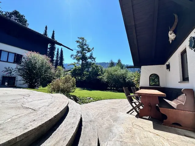 Those who arrive here immediately sense it: This country house is no ordinary home, but a place that combines security, history, and generosity. Located at the end of a quiet cul-de-sac in one of Garmisch-Partenkirchen's most beautiful residential areas, the property opens up like a little world of its own – sheltered, sunny, with unobstructed views of the majestic Wetterstein massif. This prestigious house was designed in 1964 by the renowned architect Hanns Ostler and built on a level plot of approximately 1,715 m². Twenty years later, it underwent a renovation and initial conversion, followed by an expansion and modernization in 2007. Today, the villa comprises more than 550 m² of living and usable space, which can be flexibly divided into up to four units – perfect for families, multi-generational rentals, or living and working under one roof. The moment you arrive, you immediately sense a sense of spaciousness: The electric roller shutter door opens onto a spacious courtyard surrounded by two heated garages. There's space for up to four vehicles before the path leads directly to the main entrance. There, you enter the house's largest and most prestigious residential unit. The architecture speaks of a time when rooms were designed with care and attention to detail. The large living area with a coat rack and guest toilet sets an impressive tone. From here, the view opens into the traditional country-style kitchen – cozy, functional, and equipped with a pantry. The real focal point, however, is the living areas: A spacious living room with panoramic windows, polished shell limestone floors, a historic wooden ceiling, and an open fireplace invites you to enjoy the changing seasons with all your senses. Through an open archway, you enter a true gem – a 300-year-old stone pine room from South Tyrol. With its ornamental ceiling and artfully crafted tiled stove, it exudes an incomparable warmth. This room is not just a living and dining room, but also a retreat, a hearth, a spiritual retreat. Large sliding glass elements connect the interior with the exterior, opening onto sunny southwest-facing terraces and the spacious garden. Peace and privacy are guaranteed here – a place to pause, breathe, and recharge. A few steps lead to the private part of this living unit. Two rooms, a dressing room, and a bathroom are grouped around the spacious master area. The master bedroom, with its private balcony, is particularly bright and offers breathtaking views of the Wetterstein massif, a place that inspires every day. A separate side entrance leads directly to the stairwell, which connects all levels of the house, allowing for flexible use of the various units. The garden level offers further possibilities: Here, a sunny 2-3-room unit with a small kitchen, bathroom, and two additional shower rooms is located. With direct access to the terrace and garden, this area is perfect for use as a granny flat or for professional work with client traffic – discreet, charming, and yet independent from the rest of the living area. Purely utility rooms (two cellars, boiler room, and laundry room) are located separately in the basement. The upper floor offers two light-filled residential units: an extremely charming three-room apartment with dark wood floorboards throughout, spacious sliding doors, and a fireplace. Two balconies – one facing south, a deep loggia facing east – make this apartment a sunny retreat with stunning views. Finally, the attic is the modern highlight of the house: Here, the roof was raised and a contemporary alpine loft was created in 2007. Open-plan design, exciting galleries, balconies in every room, a spacious designer bathroom with a steam shower, and an elegant kitchen with an island and counter – this area combines alpine charm with modern design. The Swedish stove, the oak floorboards throughout, and the exposed gable create an atmosphere that is both cozy and prestigious. The unobstructed view of the Wetterstein massif crowns this unique living experience. This house is more than just a country house – it's a place with history, soul, and perspective. Whether as a spacious family home, a multi-generational home, a combination of living and working, or for partial rental: the flexible floor plan opens up numerous possibilities. This traditional Ostlerhaus impresses with its impressive architecture, spacious grounds, and unique location offering peace, sunshine, and unobstructed mountain views. Here, privacy, nature, and prestigious living come together – a property of rare quality, designed to last for generations.