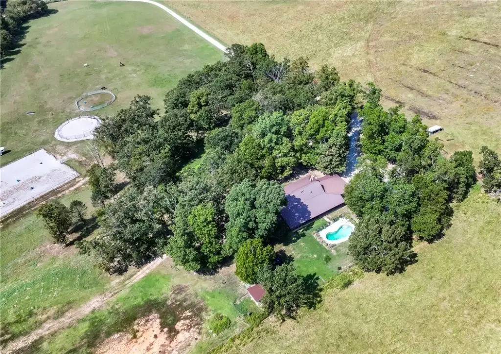 Welcome to this extraordinary 31-acre equestrian estate offering a rare blend of country living, modern amenities, and professional horse facilities. The spacious four-bedroom, three-bath home includes two bedrooms converted into a dormitory, perfect for guests, students, or staff. Enjoy a large in-ground pool and a 2½-car carport for convenience. Outbuildings include a separate garage with shop, a heated and cooled school/office building, a large hay barn, and a climate-controlled tack room. A 32x100 insulated dog kennel, partially heated and cooled, adds versatility. Designed for horse enthusiasts, the property features a large riding arena, ample hay storage, and a year-round spring and creek. With open pastures, scenic views, and efficient layout, this estate is ideal for a private equestrian retreat, training or boarding business, or multi-use agricultural venture. Combining comfort, functionality, and natural beauty, this property delivers a complete lifestyle package.