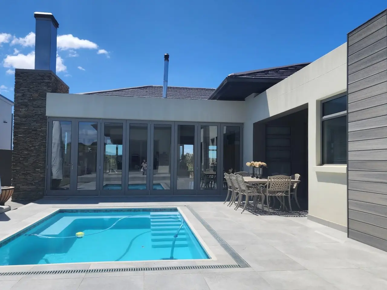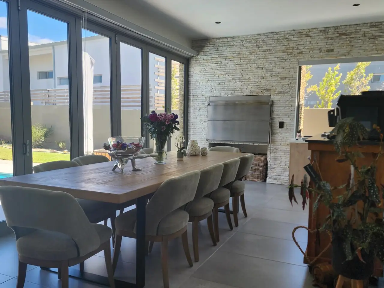 This modern home in the prestigious Oubaai Golf Estate perfectly blends style, comfort, and practicality, with a stunning swimming pool at its heart. The light-filled, open-plan layout flows effortlessly from the elegant kitchen to the spacious lounge, complete with a cosy wood-burning fireplace GÇö ideal for relaxed family living and entertaining. Featuring four generously sized bedrooms, including a luxurious master suite with a walk-in dressing area and beautifully appointed en-suite, the home showcases high-quality finishes and contemporary design throughout. Designed for sustainable, connected living, the property includes an 8kVA inverter and solar panel system to reduce energy costs, along with fibre internet included in the estate levies. Set amid the natural beauty of Oubaai Golf Estate, residents enjoy secure living, world-class golfing, scenic walking trails, and breathtaking ocean and mountain views - the ultimate balance of luxury and lifestyle.