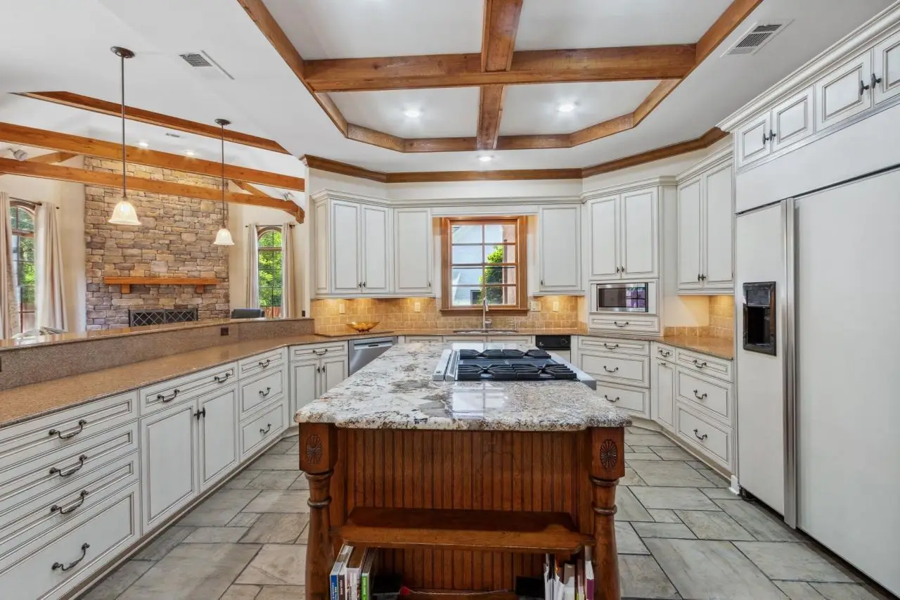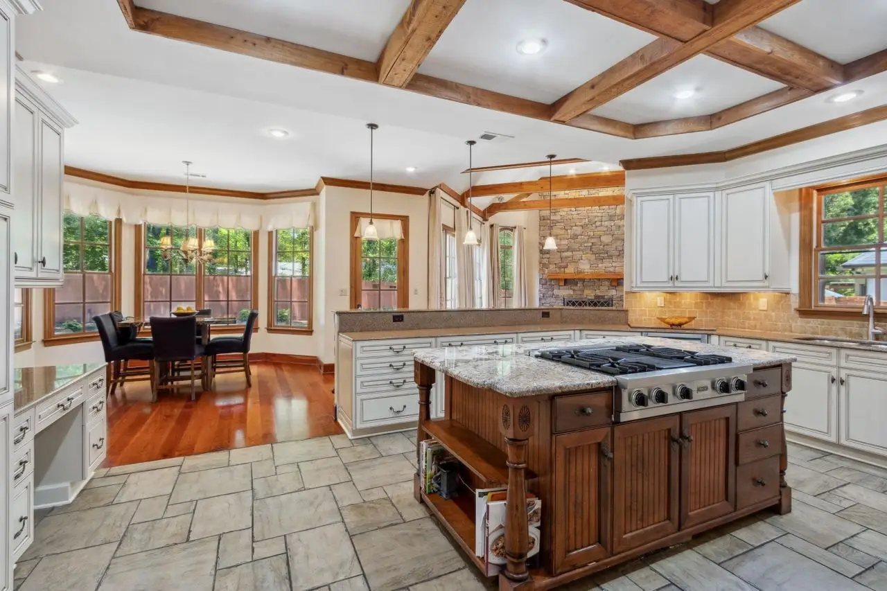 - Exposed cedar beams