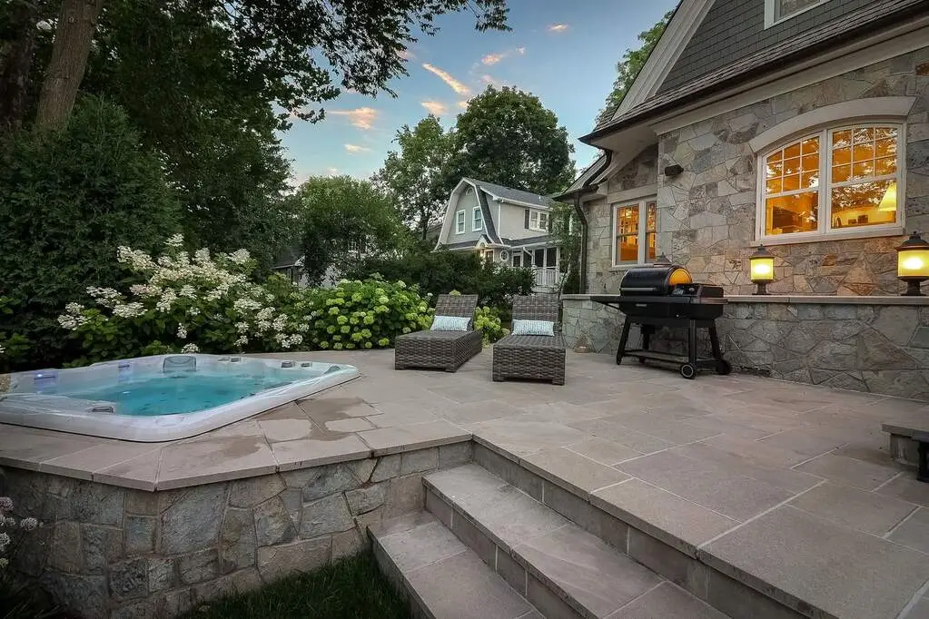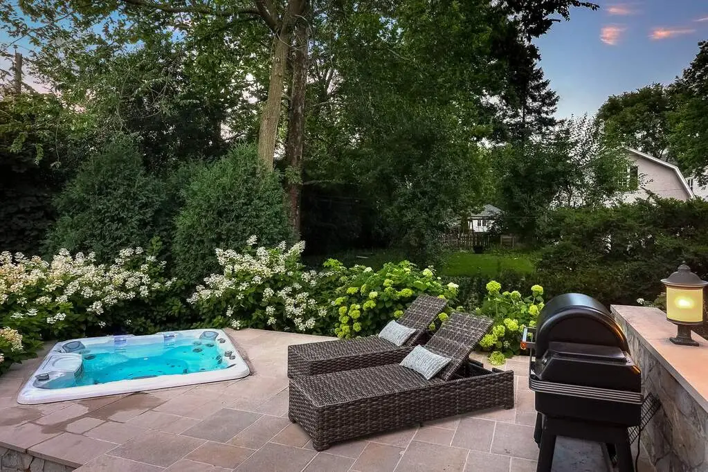 Introducing one of Glen Ellyn's most beautiful homes by the renowned Gits Home Builders, this above-grade Hamptons-style residence offers approximately 7,112 square feet of living space on over a third of an acre, where exquisite architectural details and timeless millwork set the tone for refined luxury. Designed for beauty, privacy, and practicality, this custom-built home blends state-of-the-art design with an inviting warmth that makes it truly extraordinary. The heart of the home is the oversized chef's kitchen featuring premium appliances including Wolf and Sub-Zero, custom cabinetry, and a large quartz island, seamlessly flowing into the grand family room-perfect for lively gatherings or quiet evenings. A charming dining room, complete with French doors opening to the side patio and a sparkling chandelier, sets the stage for elegant entertaining, while the stylish formal living room opens to a third patio with space for hosting guests outdoors. Upstairs, the primary suite is a private sanctuary with soaring ceilings, a spa-like en-suite bath featuring a standing tub, steam shower, and dual vanities, a custom oversized walk-in closet, and balcony. Three additional spacious bedrooms, all with radiant heated bedroom floors and luxurious baths, ensure comfort for family and guests alike. The beautifully finished third floor offers a spacious living area, wet bar with Sub-Zero beverage fridge, full bath, and custom office. The finished deep-pour basement is designed for entertaining with a full wet bar, wine cellar, media space, game areas, workout room, private guest suite, and ceiling height ideal for adding a golf simulator. Outdoor living is equally enchanting, with a secluded patio perfect for morning coffee, a hot tub for evening relaxation, and generous space for gatherings. There are 3 patios to choose from. Completing this masterpiece is a large three-car garage with room for storage, leading to a thoughtful mudroom and laundry combination. This rare opportunity in Glen Ellyn offers effortless living in a coveted location.