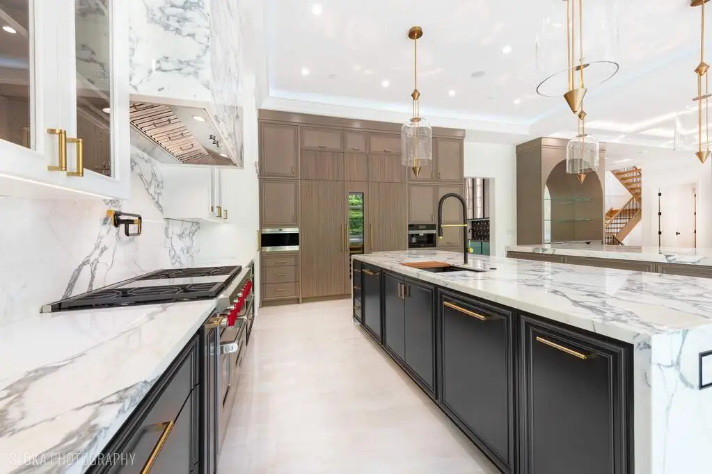 Nestled within the serene landscape of a cul-de-sac in Glencoe, this bespoke luxury estate, meticulously designed by a renowned designer, exudes timeless elegance and modern opulence. A symphony of stone and limestone, this new construction masterpiece offers an unparalleled lifestyle of refinement and sophistication. Beyond its stately facade, discover a wealth of amenities including a sparkling pool with a fully decked out pool house, two outdoor kitchens, outdoor fireplace, a four-car garage, elevator, and an indoor sports court. The main floor beckons with an expansive foyer leading gracefully into the Great Room, while the gourmet kitchen boasts double islands, Sub-Zero refrigerator and freezer, Wolf double ovens, Wolf range, Miele built-in coffee maker, and two dishwashers. A breakfast area overlooks the lush yard and ravine, complemented by a butler's pantry with beverage/wine cooler, seamlessly flowing into the dining room. Additional main floor delights include a guest bedroom with en suite, an office, powder room, and a vast mudroom with full bath and laundry. Ascend to the second level where the grand primary suite awaits, featuring an 18x14 walk-in closet, sumptuous bathroom, and beverage center. Three more bedrooms, all with en suite baths and walk-in closets, ensure comfort and privacy. The lower level is an entertainer's haven, offering a recreation room, exercise room, guest bedroom with en suite, wet and dry saunas, theater room with 5.1 Surround Sound & Rockwool sound insulation, wet bar, and access to the indoor sports court. Additional highlights include a power generator, Brava roof tiles, white oak hardwood flooring, Control4 pre-wiring with iPad wall mounted controllers, custom closet organizers, and more! With its proximity to the Metra station, downtown Glencoe, Duke park, and acclaimed schools, this residence epitomizes luxurious living at its finest.