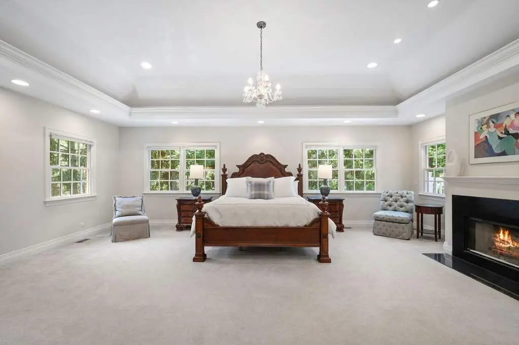 Luxurious Primary Suite with Fireplace and Tray Ceiling