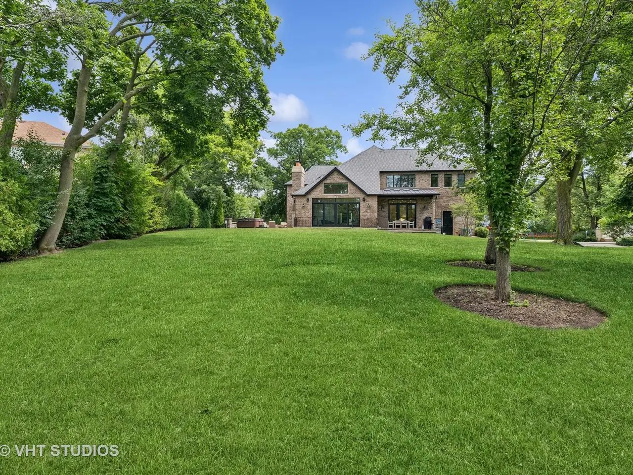 Welcome to an extraordinary residence, a true masterpiece of design and craftsmanship, perfectly situated on a secluded 0.74-acre professionally landscaped lot. This exquisite 5-bedroom home, with potential for a 6th in the basement, 4.1-bathroom brick and stone home offers an unparalleled living experience, blending luxurious finishes with a warm, inviting atmosphere. Step inside and discover a spacious open floor plan, meticulously designed to maximize natural light. The heart of this home is the chef's kitchen, a culinary dream featuring top-of-the-line appliances, custom cabinetry, and ample counter space. It seamlessly overlooks a magnificent living room, where soaring cathedral ceilings create an awe-inspiring sense of volume and an elegant backdrop for entertaining or quiet relaxation. Each of the generously sized bedrooms is a sanctuary of comfort, with many vaulted ceilings that enhance their spacious feel. The finished lower level extends the living space significantly, offering versatile areas for recreation, media, or a home gym, all kept cozy with the luxurious comfort of radiant floor heating. Outdoor living is equally impressive. A massive wrap-around patio provides an idyllic setting for dining and entertaining, complete with a charming outdoor fireplace that invites cozy evenings under the stars. The expansive yard offers endless possibilities for outdoor activities and the enjoyment of nature. Practicality meets luxury with a host of additional features including a convenient mudroom, a spacious walk-in pantry, and a three-car garage, providing ample storage and organizational solutions. This home is not just a dwelling; it's a lifestyle, meticulously crafted for those who appreciate the finest in residential living. A must-see property that truly embodies elegance and comfort.