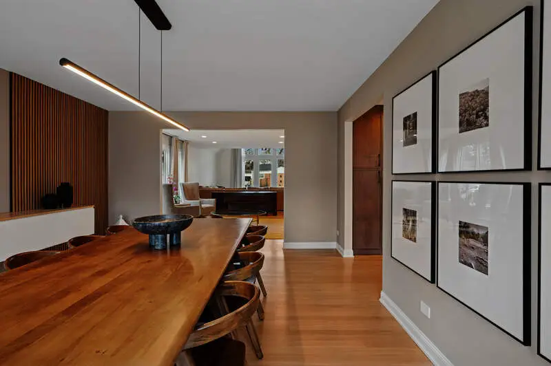 Walk your kids to school and the beautiful Avoca Park playground next door! The interior of this home is infused with gorgeous natural light and a masterfully crafted flow. A spectacular custom kitchen to accommodate any chef, with a large waterfall island, Viking stove, Sub-Zero refrigerator and wet bar. Oversized dining room made for special gatherings and holidays. The picturesque living room is surrounded by vaulted ceilings and a cozy wood burning fireplace. The second floor features four bedrooms and three full bathrooms, a custom laundry room with two washer and dryers that makes laundry a breeze in half the time. Also a large bonus room with skylights that can be used as a playroom, gym, or guest room. Open the double doors to a large primary bedroom on a separate wing of the upper level, with two walk-in closets, spa-like bathroom with dual sinks, stand up shower and jacuzzi tub. The finished basement is almost 2,300 square feet with access to the backyard and an additional fireplace to unwind. Plenty of storage areas including a walk-in cedar closet as well as a shelved area spanning the length of the lower level. Get creative in a current music studio that can easily be used as another office or bedroom. The large, fenced-in yard is professionally landscaped with blooming perennials that highlight the beauty of this outdoor space. Gather your loved ones and friends as you venture out on the brick patio, with plenty of space for entertaining or enjoying a quiet evening in the backyard of this tranquil East Glenview neighborhood home. Take a stroll or bike to the Harms Woods Forest trail just minutes away. With easy access to the highway, Old Orchard mall, Wilmette Recreation Center and more, don't miss an opportunity to own this one-of-a-kind home in the New Trier School district, contact your agent and schedule a showing today!