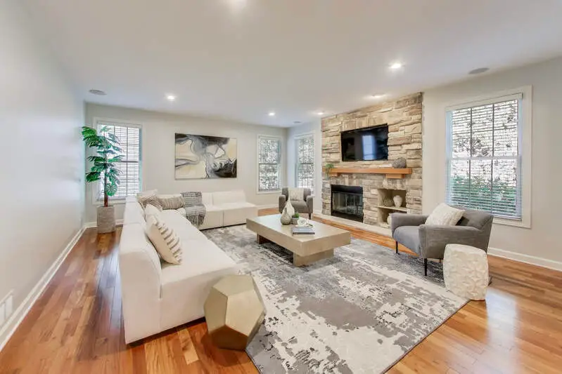 Step into elegance in this beautifully maintained 4-bedroom, 4.5-bathroom residence, built in 2005 perfectly situated in the coveted maintenance-free Haverford Glenview neighborhood. With more than 5,400 sqft of refined living space, this home invites you in with fresh neutral tones, plush new carpeting, and stylish updates designed to impress. The kitchen sets the stage as the heart of the home with polished granite countertops, a shimmering new glass backsplash, stainless steel appliances, and a generous island that flows effortlessly into the breakfast space and open-concept family room with its cozy stone fireplace and built-in entertainment center. Just beyond, sliding doors reveal a private patio, the perfect setting for intimate evenings or vibrant gatherings. The dining room exudes sophistication with custom cabinetry, while the dramatic two-story foyer, wrapped in hardwood floors, sets a commanding first impression. A spacious living room welcomes piano notes or quiet conversation, and the open layout ensures every space feels connected and inviting. Upstairs, the oversized primary suite offers a private escape with a sitting room, spa-like bath featuring a jacuzzi tub, separate shower, and a dreamy walk-in closet. Additional bedrooms, each designed for comfort, include a second en-suite with walk-in closet, along with a hall bath with dual sinks and a convenient laundry room. The finished lower level is nothing short of enticing with soaring ceilings, a massive recreation area, a sleek bar with cabinetry and sink, an additional flex space for games or relaxation, a fourth bedroom, full bath, and plentiful storage. Perfectly located near dining, shopping, and award-winning schools, this home is more than a place to live. It is a statement of style, comfort, and sophistication. Schedule your private showing today and prepare to fall in love