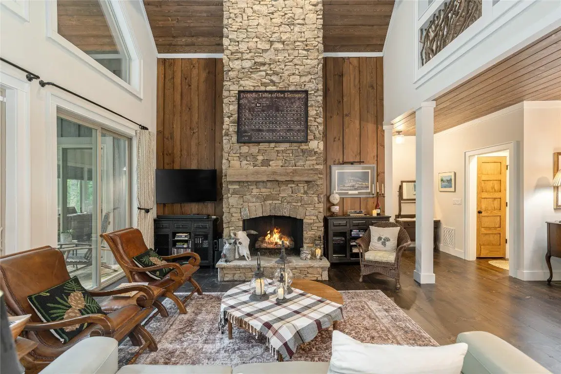 Experience the perfect harmony of easy outdoor living and tranquility at 1582 New Settler's Way, a mountain retreat crafted by Fern Creek Builders. Located in the desirable Chinquapin community, this three-bedroom, three-and-a-half-bathroom home offers a rare opportunity to own a piece of paradise, where classic mountain finishes blend seamlessly with serene natural surroundings. Inside, a thoughtfully designed floor plan features a welcoming rocking-chair front porch, two cozy fireplaces, abundant natural light, and low-maintenance finishes throughout. The spacious gourmet kitchen connects to a warm living area, perfect for entertaining or relaxing. An indoor-outdoor lifestyle is highlighted by a screened-in porch, a grill deck, and a stone firepit — ideal for enjoying starry mountain nights. The property borders a winding creek and is complemented by the gentle sounds of a nearby waterfall, making it an ideal retreat to spend time in nature. Whether enjoying a morning coffee on the porch or relaxing by the fire, the setting offers quiet serenity. Additional features include an attached two-car garage, ample storage, spacious ensuite guest bedrooms, and access to community outdoor amenities within the gated Chinquapin community. Chinquapin spans an impressive 2,000 acres with more than 700 acres dedicated to permanent conservation. This community offers park-like living with a host of unparalleled amenities. Scenic trails for hiking, biking, and utility terrain vehicles provide for an outdoor lifestyle, while fishing opportunities are available in the community’s lakes and streams. Pickleball courts, a disc golf course, and a driving range are also available just moments away. The Outpost Clubhouse provides a fitness facility, cozy gathering spaces, and seasonal live music during the vibrant Summer Concert Series. Whether relaxing by the firepit, canoeing along tranquil waters, or exploring the unspoiled natural surroundings, Chinquapin presents countless ways to connect with nature and neighbors alike. Offering unmatched ease of access compared with other available lots, this move-in-ready property at 1582 New Settler's Way promises exceptional peace, privacy, and refined mountain living, whether as a full-time residence or a mountain retreat.