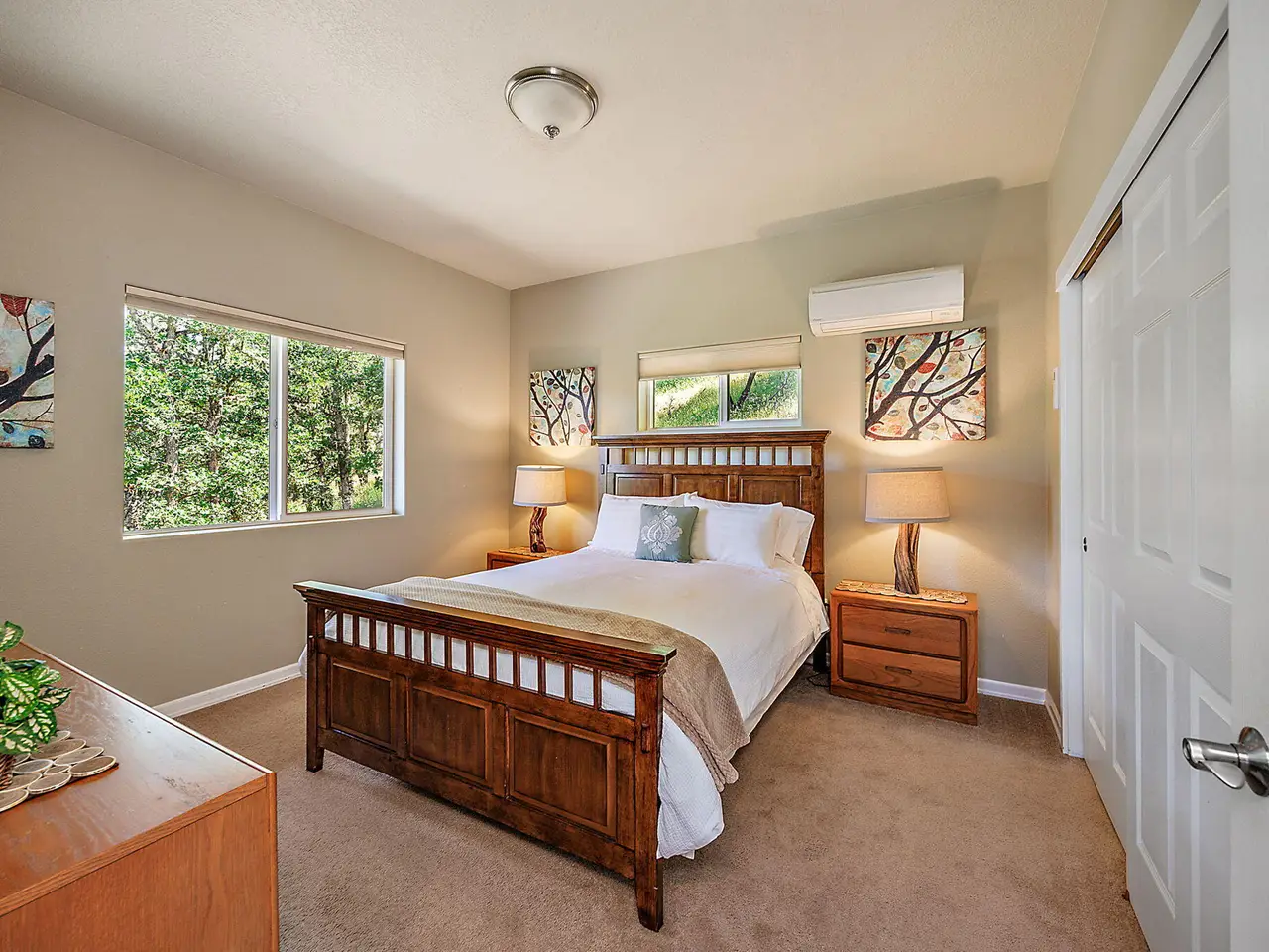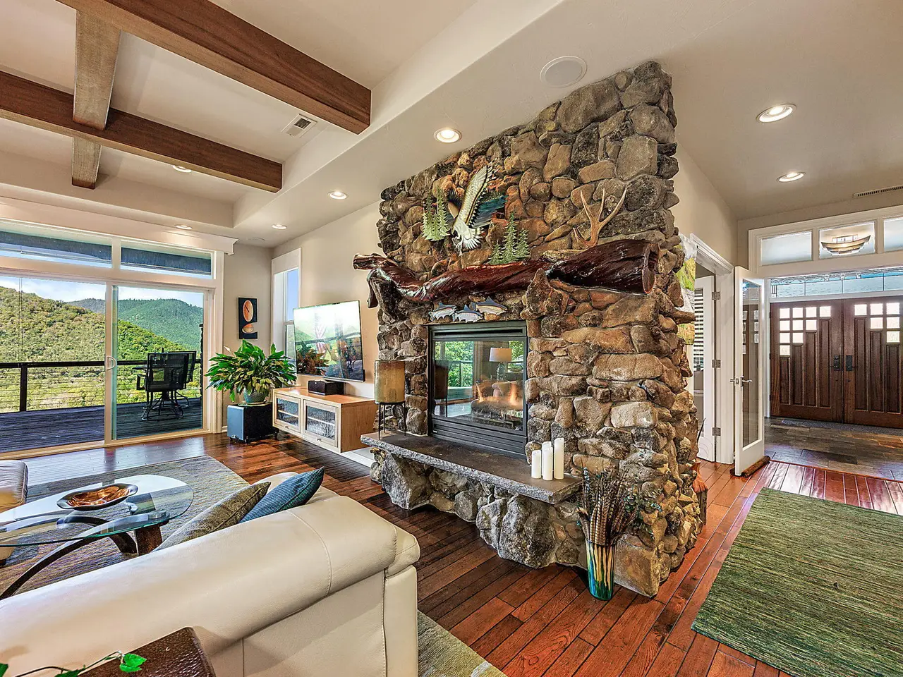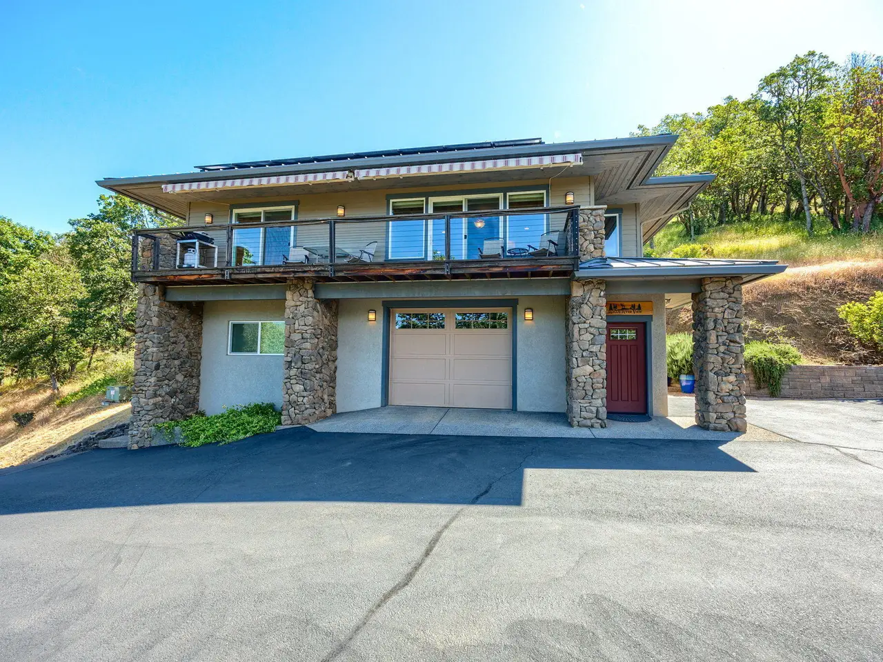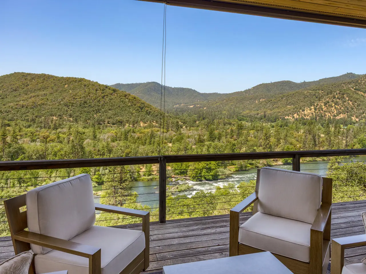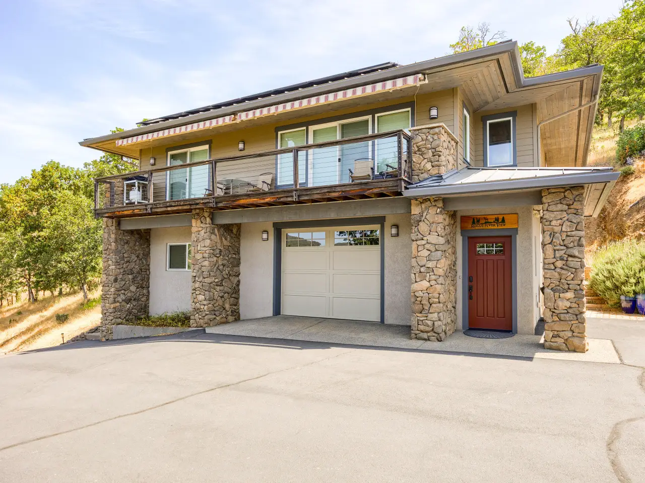 Privacy, gated security, convenience, abundant wildlife, whitewater, incredible mountain & Rogue River views w/amazing river sounds combine to provide the ultimate Southern Oregon lifestyle. This 2012 custom designed home built on 46-wooded acres features a two-story hillside layout with main floor living, 3,604 sf., 4 BR, 3 BA, home office, chef kitchen, rec/game room, hot tub, & 2 covered decks for seamless indoor/outdoor entertaining with river views. Paved drive w/3 garage spaces & convenient EV charger. A separate furnished modern 2 BR, 1 BA, 1,200 sf. ADU above shop/garage is perfect for multi-generational living or rental income. Interior/exterior natural rock architectural features enhance the professional interior design features for gathering in this exceptional home. Irrigation water rights, river access, & efficient solar panels on a firewise low maintenance property complete this versatile and inviting retreat. This can be your home with owner carry terms available!