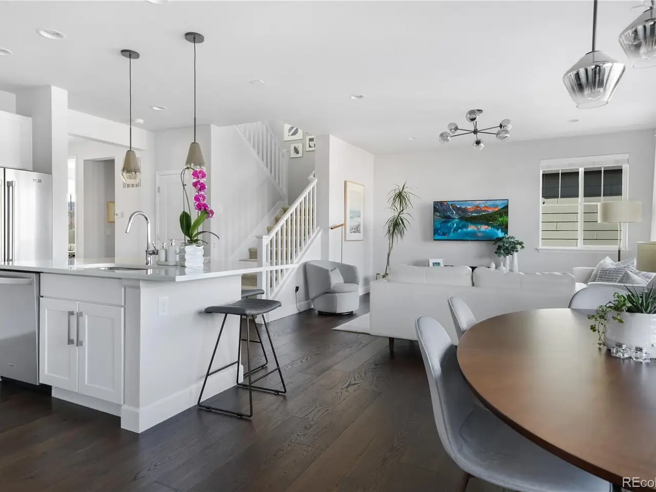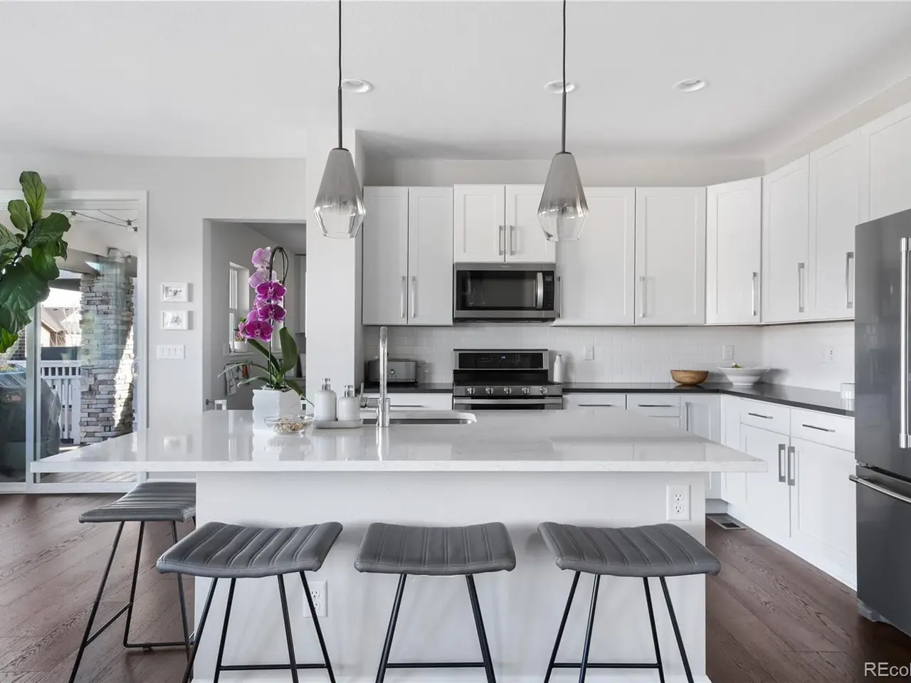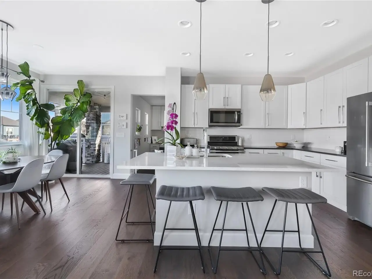 www.15551W49th.com - Discover the perfect blend of modern convenience and Colorados natural beauty in this stunning home, ideally situated in the sought-after Gardens at Table Mountain neighborhood in Golden. Situated on a private drive, this residence offers designer finishes, an open floor plan, elevated ceilings, abundant natural light, and views of North Table Mountain. A private office with French doors provides the ideal work-from-home space, while a discreet powder room is tucked off the entryway. The bright and inviting living room flows seamlessly into a gourmet kitchen, complete with a large center island with seating for four, stainless steel appliances including a gas range and French door refrigerator, white shaker cabinetry, timeless subway tile, and elegant quartz countertops. The dining area is adjacent to a covered Trex-style deck that leads to a newer patio and beautifully landscaped, low-maintenance backyardperfect for outdoor dining & entertaining. Conveniently located off the kitchen, the mudroom includes a built-in office to provide everyday functionality and effortless flow. Upstairs, the spacious primary suite captures mountain views and features a spa-like bathroom with dual sinks, a frameless glass shower, and a generous walk-in closet. Two additional bedrooms, a full bath, and a dedicated laundry room with custom shelving & cabinetry complete the upper level. The garden-level basement, finished in 21, offers flexible living with a bright family room, fourth conforming bedroom, stylish bath, and a flex space currently used as a home gym. The custom bar with floating shelves and beverage fridge makes it an entertainers dream. Enjoy community amenities including a pool, multiple parks, trails, and open spaceall within easy reach of top-rated schools, downtown Goldens shops and restaurants, and nearby hiking and biking trails. Quick access to major highways ensures effortless commutes and weekend adventures alike.