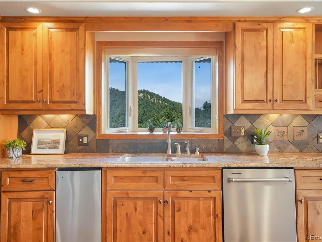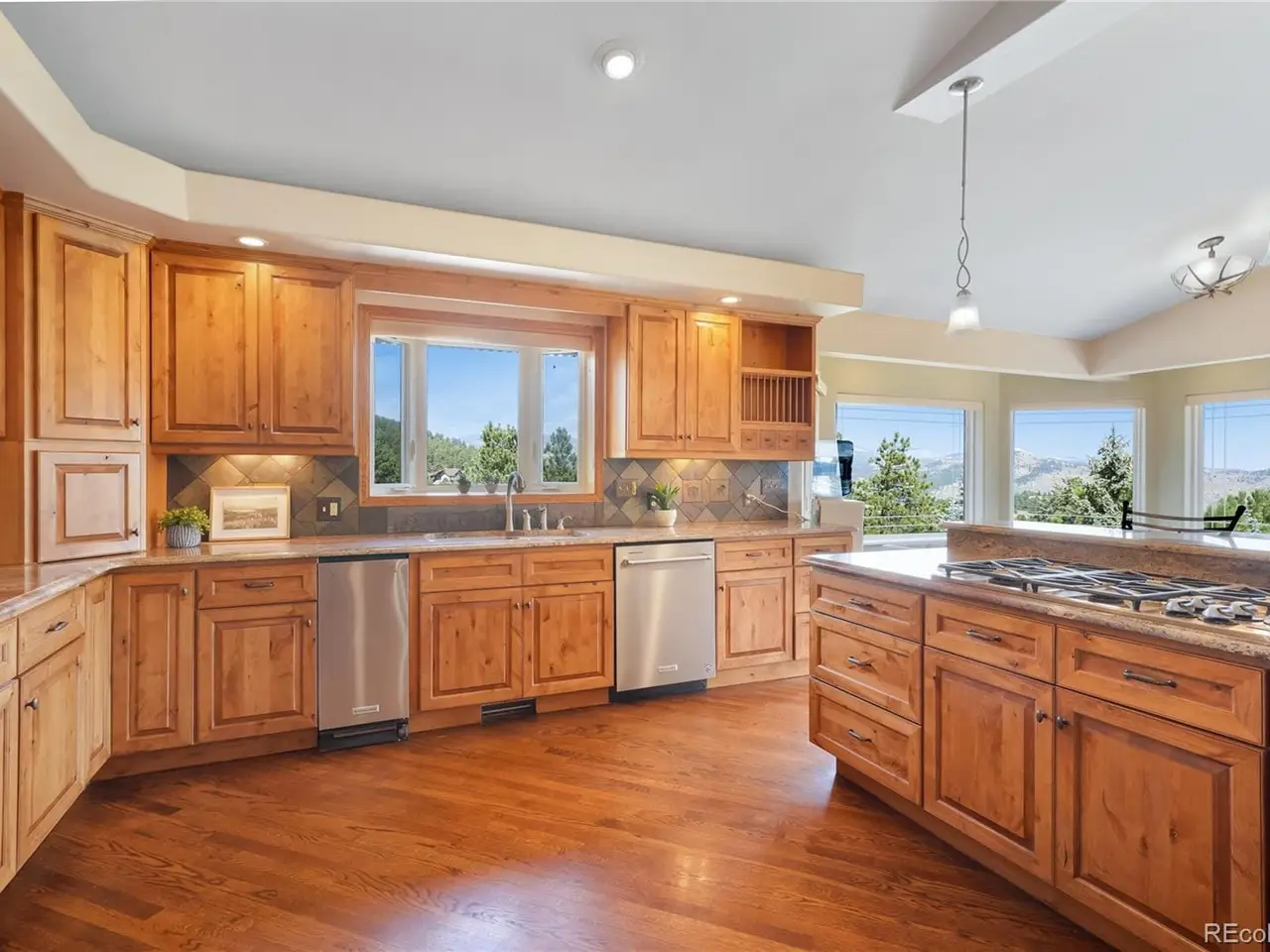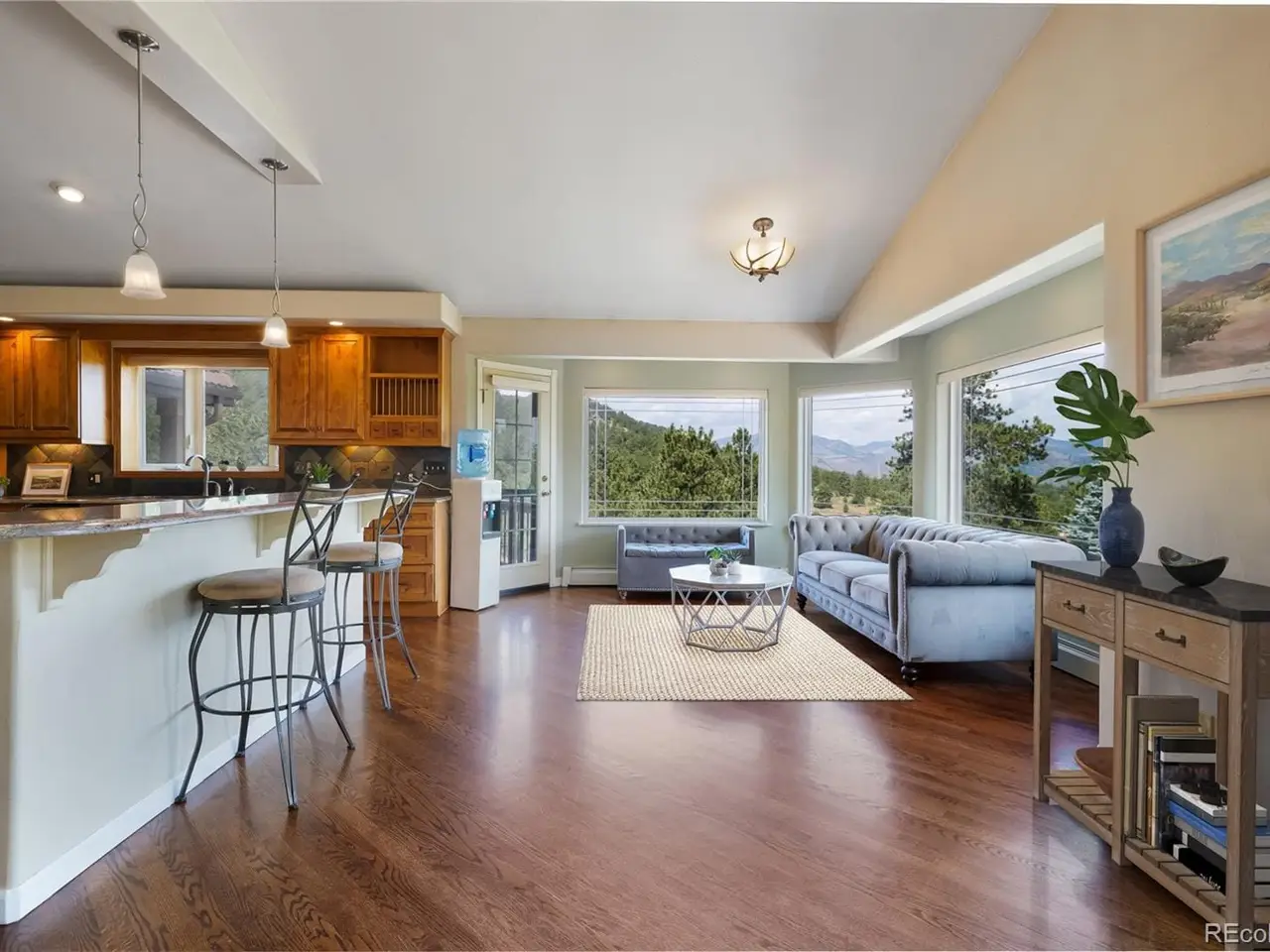 Breathtaking views and everyday convenience come together in this Lookout Mountain home. Located in Cody Park, this spacious contemporary home offers the perfect balance of mountain living and city access just minutes from I-70, 25 minutes from downtown Denver, and 90 minutes from world-class skiing. Step inside to gleaming hardwood floors and unique architectural details. The chefs kitchen is a true centerpiece with stainless steel appliances, a slab granite breakfast bar, huge pantry and a sunny sitting area perfect for slow mornings as the mountains awaken outside your window. The open dining and living areas invite gatherings with family and friends whether its a lively dinner party or a quiet night by the fire.The primary suite feels like a private sanctuary, complete with its own sitting area, a two-sided fireplace, a five-piece bath, and a large walk-in closet. Two additional main-floor bedrooms and two home offices provide wonderful flexibility whether you need creative studio space, a quiet home office, or room for guests. The finished walk-out lower level adds even more possibilities, featuring a mother-in-law apartment. Its the ideal setup for multigenerational living, long-term guests, or simply giving everyone their own space. Fabulous outdoor spaces! Enjoy your morning coffee on the expansive deck as the sun rises, spend afternoons watching deer and elk wander through the pines, and wind down in the evenings with a glass of wine as the sky paints itself with breathtaking Colorado sunsets. A stamped concrete patio and a private courtyard create additional outdoor living areas perfect for barbecues, stargazing, or cozying up with a good book. With a 3-car garage plus additional parking, theres plenty of room for vehicles, mountain toys, and gear. Cody Park combines privacy, wide-open views, and a true sense of Colorado mountain livingwhere every day feels like a getaway, but the city is always within reach.
