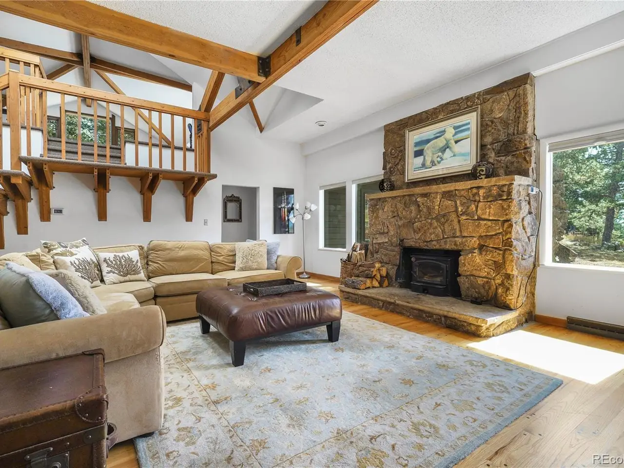 Mount Vernon Home with Mid-Century Flair! This distinctive Mount Vernon home blends mid-century modern architecture with timeless charm. The dramatic great room showcases soaring ceilings, massive wood beams with metal brackets, pegged hardwood floors, a striking stone wood-burning fireplace, and expansive windows and skylights that fill the space with natural light. The open dining area flows seamlessly into the kitchen, featuring vintage parquet flooring. The main-floor primary suite offers his-and-her closets and an en-suite bath, plus two additional main-floor bedrooms featuring large windows framing the treed setting. A vaulted flex/family room upstairs with an incredible vaulted beamed ceiling opens to a private rooftop deckideal for entertaining, working from home, or stargazing. Outdoor living is enhanced with a 1920s gazebo, a spacious front porch, patio and park like .7 acre lot. The lower level provides versatile space for hobbies, a workshop, or extra storage. A detached garage with sliding barn-style doors adds to the charm. Mount Vernon is more than just a place to liveits a way of life thats truly one-of-a-kind with vast open spaces, hiking trails, and abundant wildlife. What also sets Mount Vernon apart is its deep sense of community. As a homeowner, youre not just a resident you become part of the Metro District, a tight-knit group that works together to preserve this special place. The Mount Vernon Canyon Club is at the heart of it, where residents enjoy fine dining, a clubhouse, a pool, tennis courts, and horse facilities. Ralston Elementary is also conveniently located at the edge of the neighborhood. The HOA Fee of $496 includes a Social Membership. Additional membership packages, including aquatic, racquet, sports and community horse facilities, are available for an extra fee.