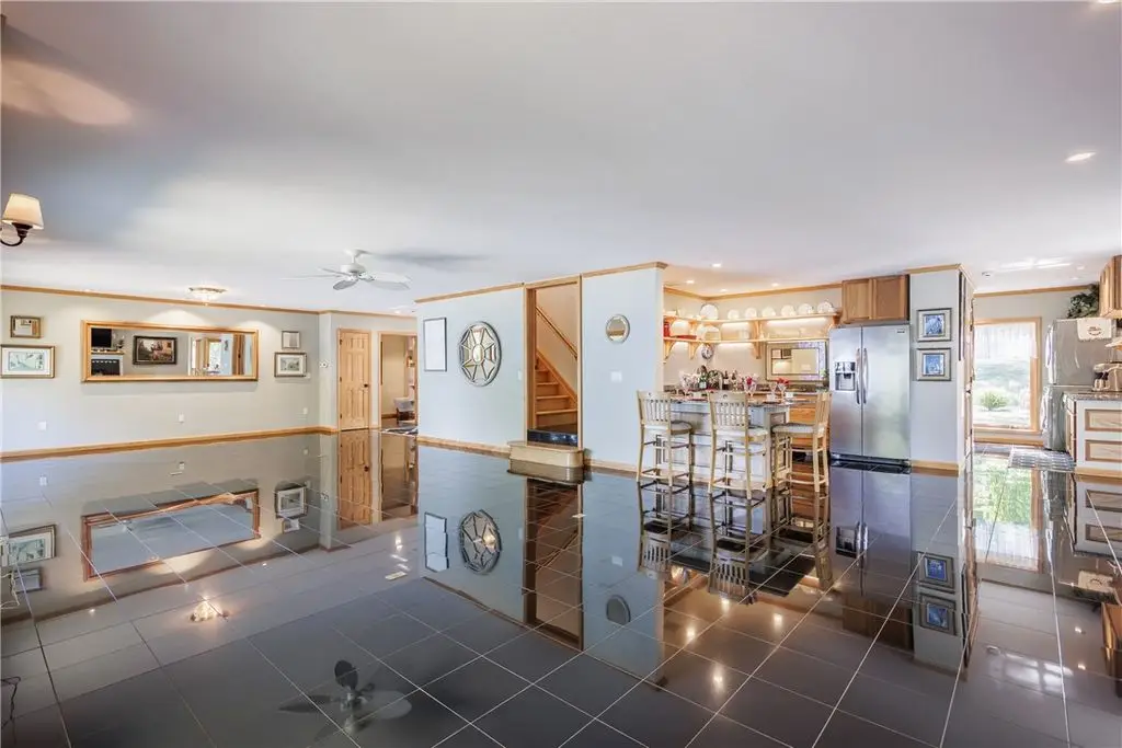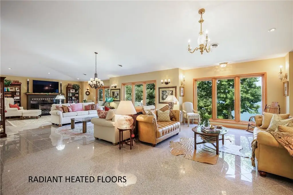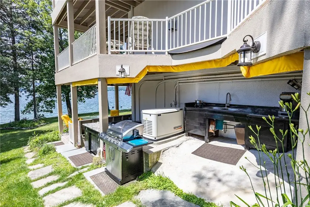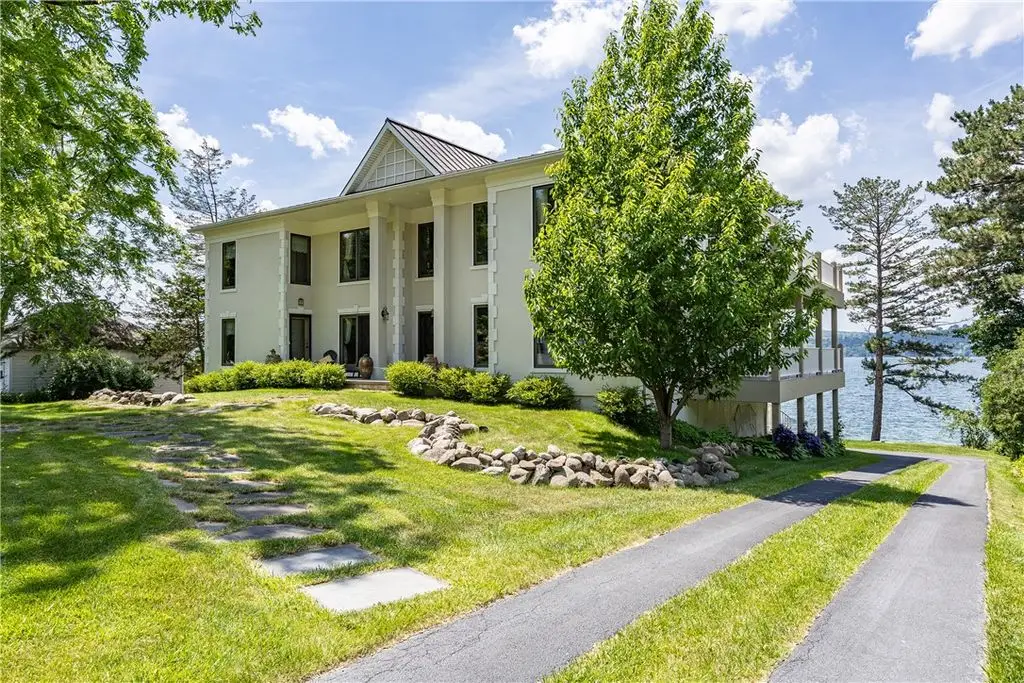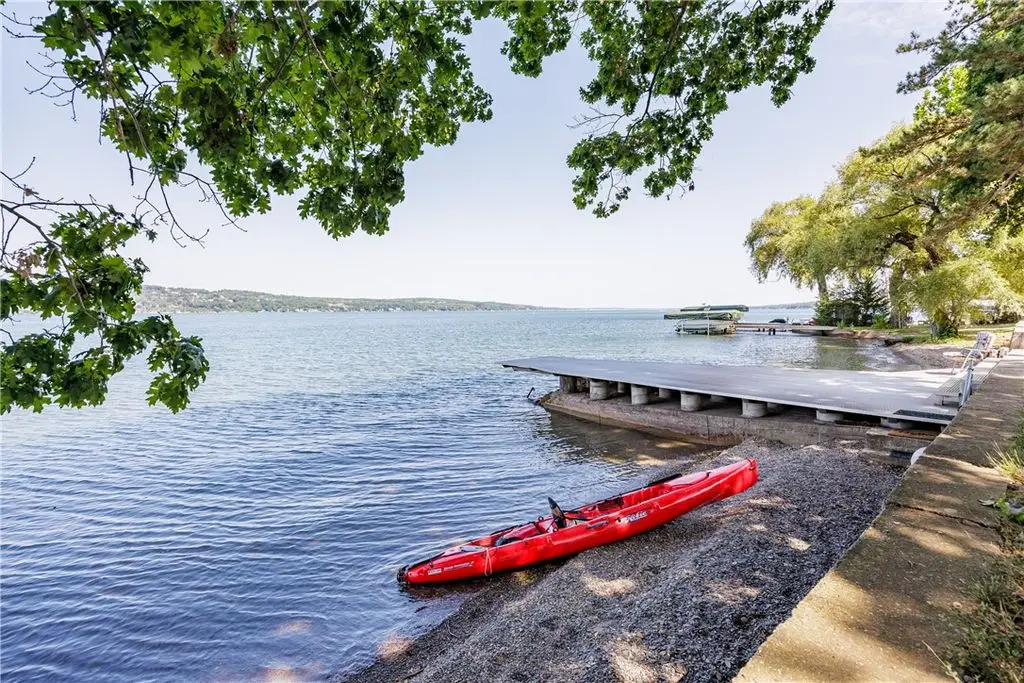 108' Rare, Level Lakefront + Custom 7-Bed, 7-Bath Luxury Home. Canandaigua Lake - Move-In Ready. Step into a showpiece of lakefront luxury. This custom 7,200 sq ft sanctuary (built 2013) sits on a unique level lot - safely "above the road" and never known to flood - and boasts 108 feet of premier Canandaigua Lake frontage. WATERFRONT & OUTDOOR HIGHLIGHTS ARE: Permanent 35'x20' aluminum dock, anchored over the lakes widest shelf, Natural shale beaches on both sides of dock and secure kayak/sailboat storage and solid poured concrete break wall. DESIGNED FOR FAMILY & FRIENDS with Seven separate bedrooms, each with its own fully accessible bathroom (heated granite floors), Two full gourmet kitchens + wet bars + lower level kitchenette + summer kitchen with infrared grill, Natural gas fire pit, three independent decks per level and Spacious elevator with lockout from all levels to decks and garage. PRESTIGE & PERFORMANCE with Triple-pane Anderson windows, closed-cell foam insulation - total utilities $1,700/year, Whole-house automatic Generac generator, Oversized 4+ car heated garage with polyaspartic heated floors, insulated-glass doors, cross ventilation, Elegant oak millwork, crown molding, custom staircases and high-end finishes. WHY THIS HOME CAPTIVATES: Imagine summer evenings by the fire pit, aerial views across Canandaigua Lake, family gatherings in an expansive gourmet kitchen, and effortless access for all ages and mobility levels. This is more than a home - it's a legacy retreat. The square footage difference is per seller.