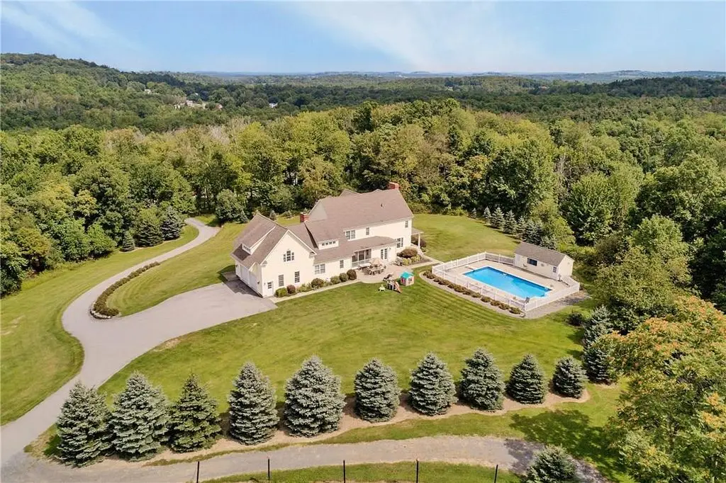 Rare Treasure! Incomparable, private, extraordinary, 46+ acre mini estate. 14 room, 6 bedroom, 3 bath colonial with panoramic vistas, 2 stocked ponds, 5 stall barn with water and electric, guest cottage with professional kitchen, paddocks, run in sheds, wine cellar, in ground salt water pool & cabana with lav., basketball/tennis court, trails, fields, nature, trees, wildlife and much more. Just minutes to historic Village of Goshen, Route 17, & access to Heritage hiking & running trail. Your own private paradise to experience the beauty of nature, farm, ride horses or possible subdivision with municipal water, sewer & gas now available. Quality craftsmanship abounds in this manor with formal moldings, hardwood floors, 3 brick fireplaces & chef's designer kitchen, in-law quarters & much more. Close to major shopping, Route 17, Legoland, historic Village of Goshen amenities in one of the county's hottest locations. One of a kind property that uplifts your spirits and has endless possibilities.