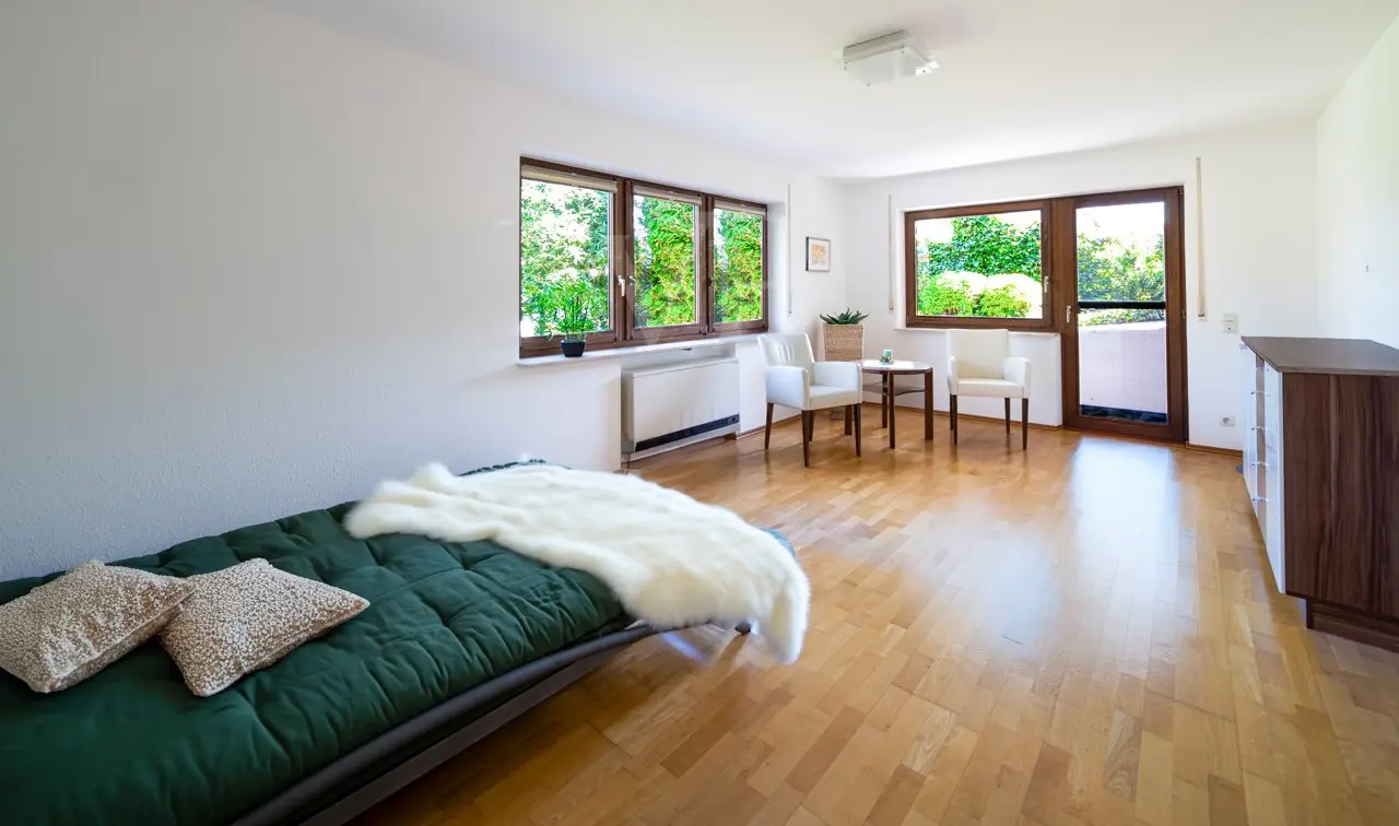 For sale is a modernized two-family house, which was built in 1987 in solid construction (Calinoor masonry 30 cm). The house is situated on a plot of approx. 490 m² on a slight slope in a traffic-calmed cul-de-sac/play street. The location on the outskirts of the village, surrounded by meadows and fields, is ideal for families or nature lovers and offers an excellent quality of living in a charming and peaceful environment. The two-family house impresses with its generous space and high-quality furnishings. The property has been continuously modernized and renovated and presents itself in an excellent and very well-kept condition with upscale furnishings. The high-quality materials underline the character of this special two-family house. The most important modernizations include the installation of a new hot water storage tank in 2024 and the replacement of the electric radiators on the ground floor and attic (in new storage heaters from Stiebel-Eltron) in 2022. The renovation of the windows began in 2021 and was completed in 2024. Most of the windows were fitted with double glazing with heat-insulating glazing and sound insulation, which ensures a pleasantly quiet atmosphere and good insulation. The window frames themselves are made of high-quality Meranti wood. The roof windows are fitted with triple glazing and an electric drive. All these activities round off the modernization measures perfectly. The upscale furnishings of the property, which are reflected in the materials used and the modern technical installations, deserve special mention. Furthermore, high-quality fly screens have been fitted to all balcony doors and some windows. Two additional terraces offer an ideal space and further retreats for relaxation and outdoor leisure activities. The total living space of approx. 286 m² is distributed over a total of eight rooms, including four bedrooms and three bathrooms. The room layout allows the property to be used as a two-family house with a granny apartment or the building can be divided into three potential and separate residential units. The spacious layout of the rooms offers a variety of uses for families or as a multi-generational home. On the first floor, partial underfloor heating ensures a pleasant indoor climate and a tiled stove guarantees a particularly pleasant atmosphere and provides you with cozy additional warmth. On the top floor, there is also a HASE wood-burning stove in the living and dining area, which guarantees cozy hours in front of the fire. Heating is provided by a modern, energy-efficient electric heating system, which ensures effective heating with new storage heaters from Stiebel-Eltron from 2022. A photovoltaic system with an output of 6 kW supports the ecological energy supply of the house and thus reduces the ancillary costs. The fenced plot and outdoor facilities include a small garden with a rainwater storage tank and garden shed, as well as two terraces and a high-quality hanging umbrella, which invite you to relax outdoors. A south-facing balcony and a west-facing loggia offer further opportunities to enjoy the sun. A big plus is the double garage and an additional outdoor parking space, which offer plenty of room for all vehicles. Three very large cellar rooms and a laundry room are freely available in the basement of the house. The ground floor apartment and the top floor apartment are each equipped with upscale fitted kitchens for a purchase price of 15,000 euros. The kitchens combine functionality with contemporary design. If you are interested in viewing the property, we will be happy to arrange an appointment to show you this very well-maintained and modernized two-family house.
