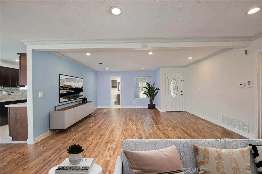 Welcome to this charming home nestled in the highly desirable North of Rinaldi neighborhood of Granada Hills. Tucked away on a peaceful cul-de-sac, this residence greets you with a classic white picket fence and an inviting front porch that sets the tone for the warmth inside. Step into a light-filled, open-concept floor plan designed for both comfort and functionality. The remodeled kitchen showcases granite countertops, stainless steel appliances, and soft-close cabinetry, with a convenient laundry room just off the kitchen. Both bathrooms have been tastefully updated, complementing the home’s modern style. Three generously sized bedrooms provide the comfort and flexibility you’re looking for. The low-maintenance backyard features a covered patio and spacious side yards, creating the perfect setting for outdoor entertaining or relaxation. Additional highlights include newer dual-pane windows and sliding glass door, updated flooring, crown molding, recessed lighting, smooth ceilings, durable vinyl fencing, and more. This home blends timeless charm with thoughtful upgrades—ready for you to move right in and enjoy.