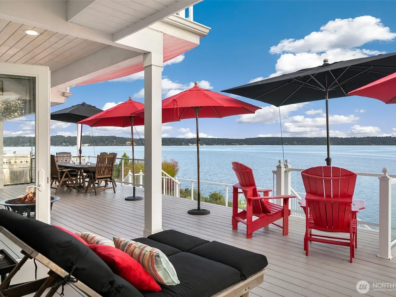 Sitting on the southern end of Stretch Island, this home has been lovingly designed to embrace the beauty of the Puget Sound. From the time you cross the bridge onto the island, you feel transported to a magical and peaceful place. Rebuilt in 2007, the home has been designed to maximize the glorious 180-degree views of Case Inlet, with Mt. Rainier front and center. Upper and lower decks allow for whale, eagle, otter, and seal watching. A staircase leads down to 75ft of cobble beach with oysters, clams-and a new bulkhead. Beautifully curated landscaping provides color and lush greenery all year round- pick your own olives and kiwis! It is very rare to see property for sale in Vineland Cove--so seize the opportunity while you can!