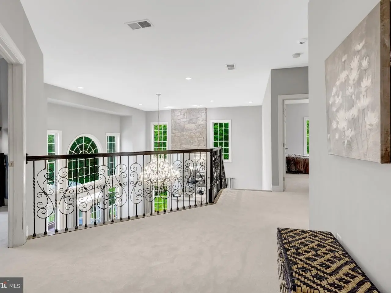Two-story foyer with wrought-iron staircase