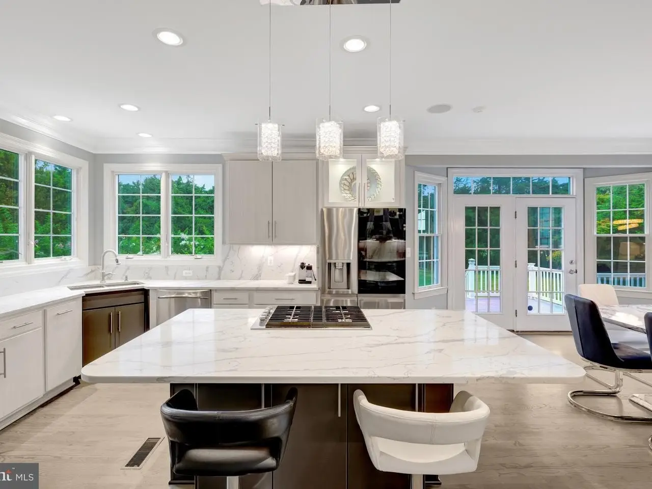 Set on nearly two private acres backing to River Bend Country Club, this 4-bedroom, 4.5 bath brick colonial estate offers 7,100 sq ft of total living space. Natural sunlight pours through oversized windows throughout. Highlighting custom details at every turn and creating a home that is as elegant as it is inviting, perfect for both entertaining and everyday living. A two-story foyer with wrought-iron staircase creates a grand first impression, leading into both the formal and dining rooms that open onto a bright sunroom, ideal for morning coffee or relaxing garden views. The two story, sundrenched family room with fireplace offers a cozy retreat. While the newly remodeled kitchen serves as a true centerpiece of the home, featuring quartz countertops & backsplash, custom cabinetry, and an oversized seated island that flows seamlessly to the expansive deck and manicured lawns. Upstairs, the primary suite serves as a private retreat, complete with a sitting area and a spa like primary bathroom. The second bedroom is ensuite, while bedrooms 3 & 4 are connected through an adjoining bathroom. The walk-up lower level is designed for entertaining and relaxation, offering a custom bar, home theater, and versatile rec spaces. Outside, expansive decks, mature trees, and lush lawns create the perfect backdrop for gatherings or quiet reflection. The three- car garage with epoxy flooring and private driveway completes the property.