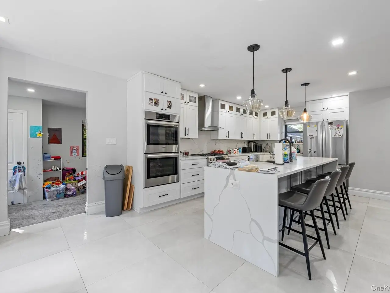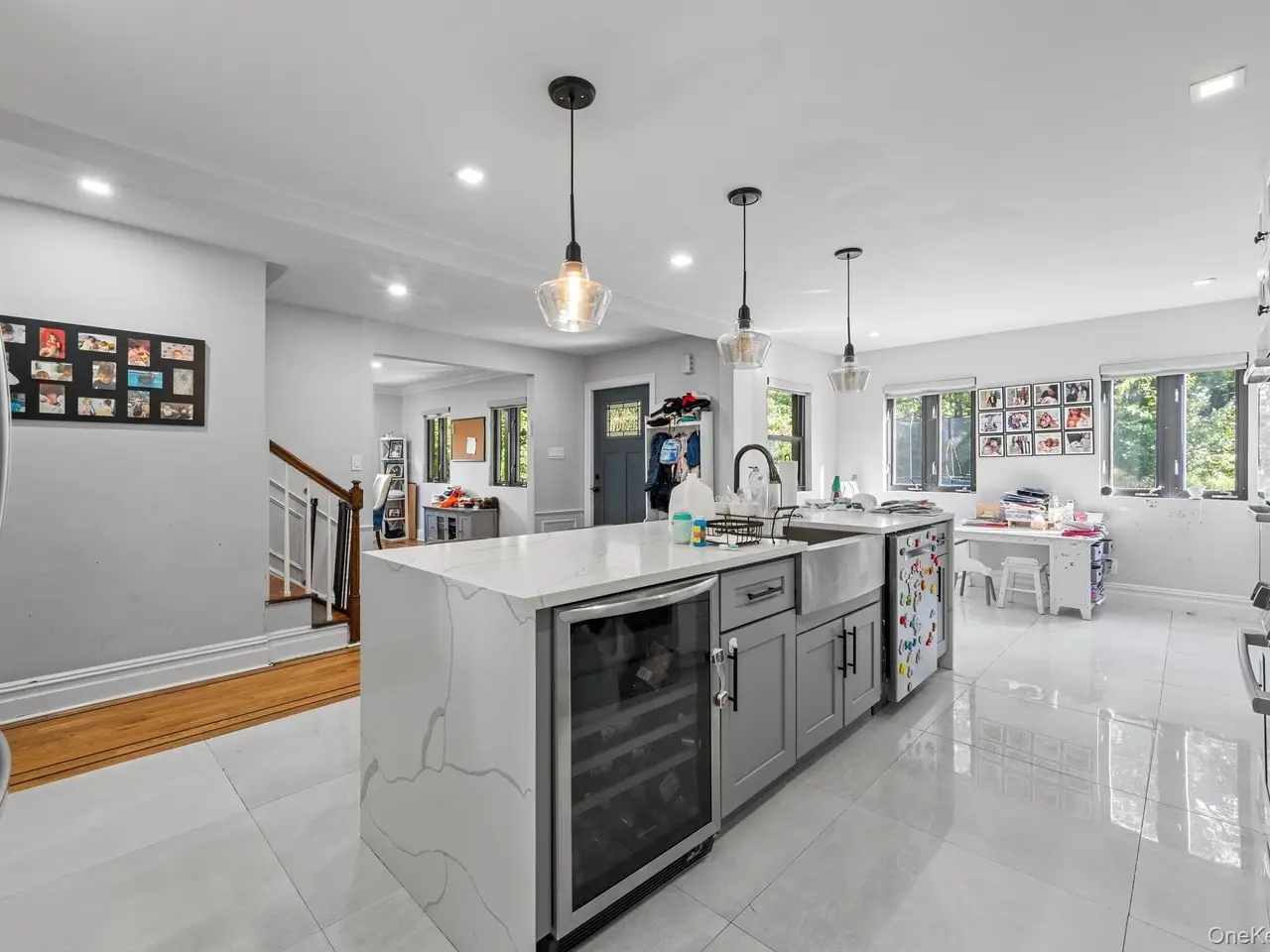 Welcome to this beautifully renovated, sun-drenched home on a quiet, tree-lined residential street. This charming residence features three spacious bedrooms, a lovely living room with a cozy fireplace, and a bright sunroom or home office. The formal dining room opens to an elegant chef’s eat-in kitchen with floor-to-ceiling custom cabinetry, a full suite of stainless steel appliances, an island with bar seating, and a generous breakfast area. The second floor offers a primary bedroom with a private en-suite bath and balcony, plus two additional bedrooms sharing a modern full bath. The large finished basement is ideal for entertaining, complete with a home office area and ample storage. Additional highlights include a laundry room on the first floor, a wide private driveway, a two-car garage, and a beautiful backyard. Conveniently located near shopping, schools, parks, and restaurants.