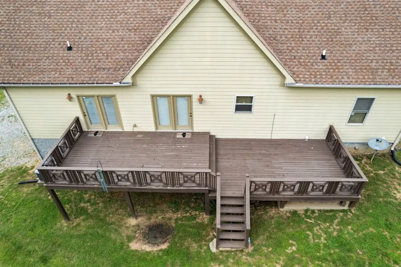 Private setting on 8.33 acres with a ranch/ a frame home, bring horses, cows, chickens. Enjoy the peace and comfort while watching all the wildlife. Great for shooting plus a creek at the end of the property with trees. Home has a little over 3600 sq ft. 2 kitchens 4 bedrooms and 4 baths. Great room and the downstairs bonus room/ bedroom have a fireplace with gas logs. Basement is finished can have separate living quarters. Floors are laminate, tile, carpet, lots of cabinets, open, split bedrooms. Garage in the basement. Large deck Tranquil setting
