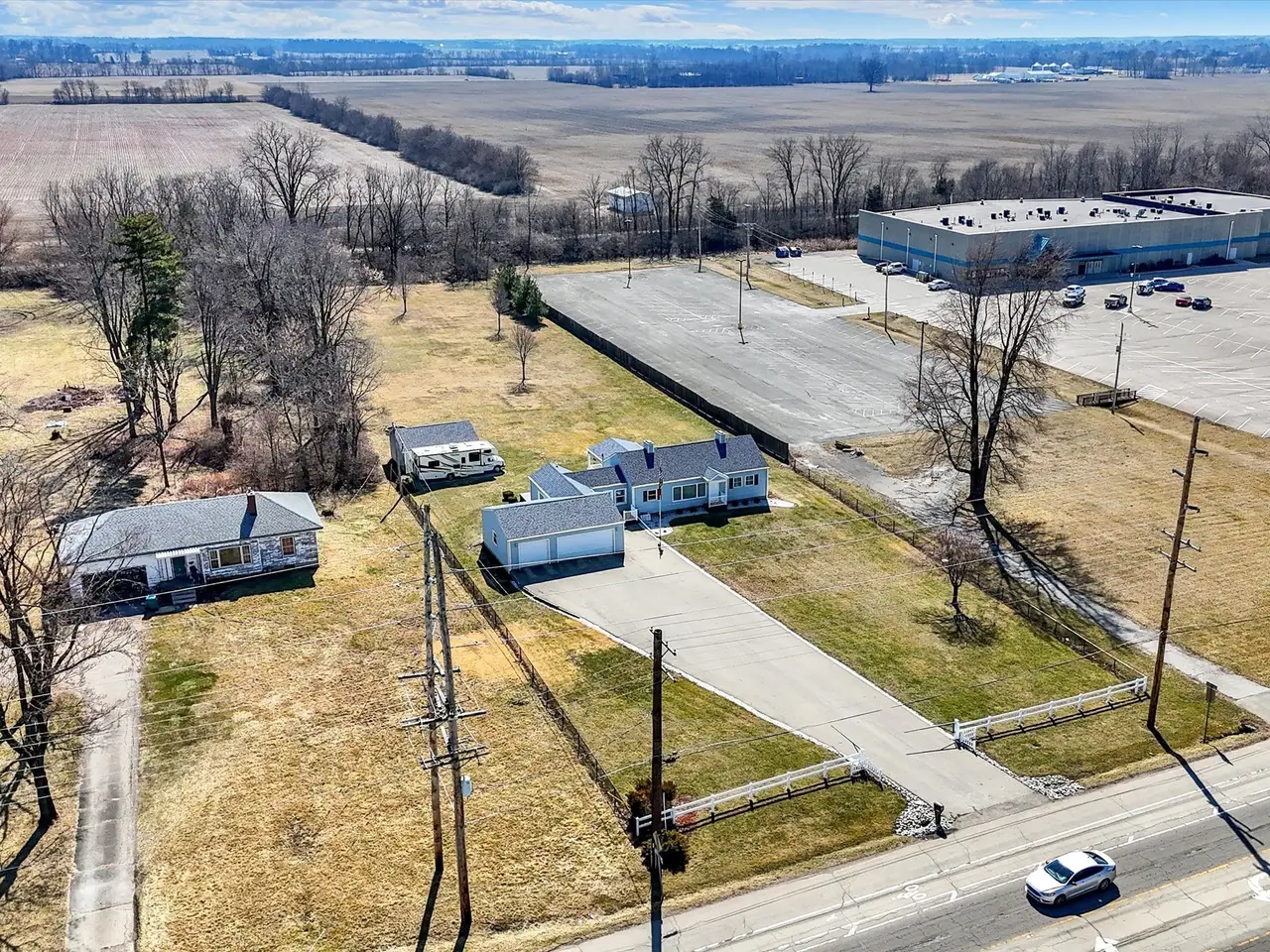Great commercial location on the west side of Greenfield offering 1.979 acres. Parcel offers a well kept 1296 sq home along with a 3 car attached garage and a 1 car detached garage. The current structures could be used for multiple situations plus there's plenty of space for additional development. Parcel sits immediately east of a 9 screen theater and within a close proximity to multiple car lots, other commercial uses and residential developments. Zoning is National Road which allows for broad range of commercial uses including residential with commercial uses, multi-family, retail, grocery, restaurants, studios, health studios, spa, garden centers, professional offices, financial services, convenience stores, auto wash, auto service and repair, auto sales, auction facilities, self storage, commercial parking, manufacturing and additional uses (some require board of zoning approval and or development plan approval).