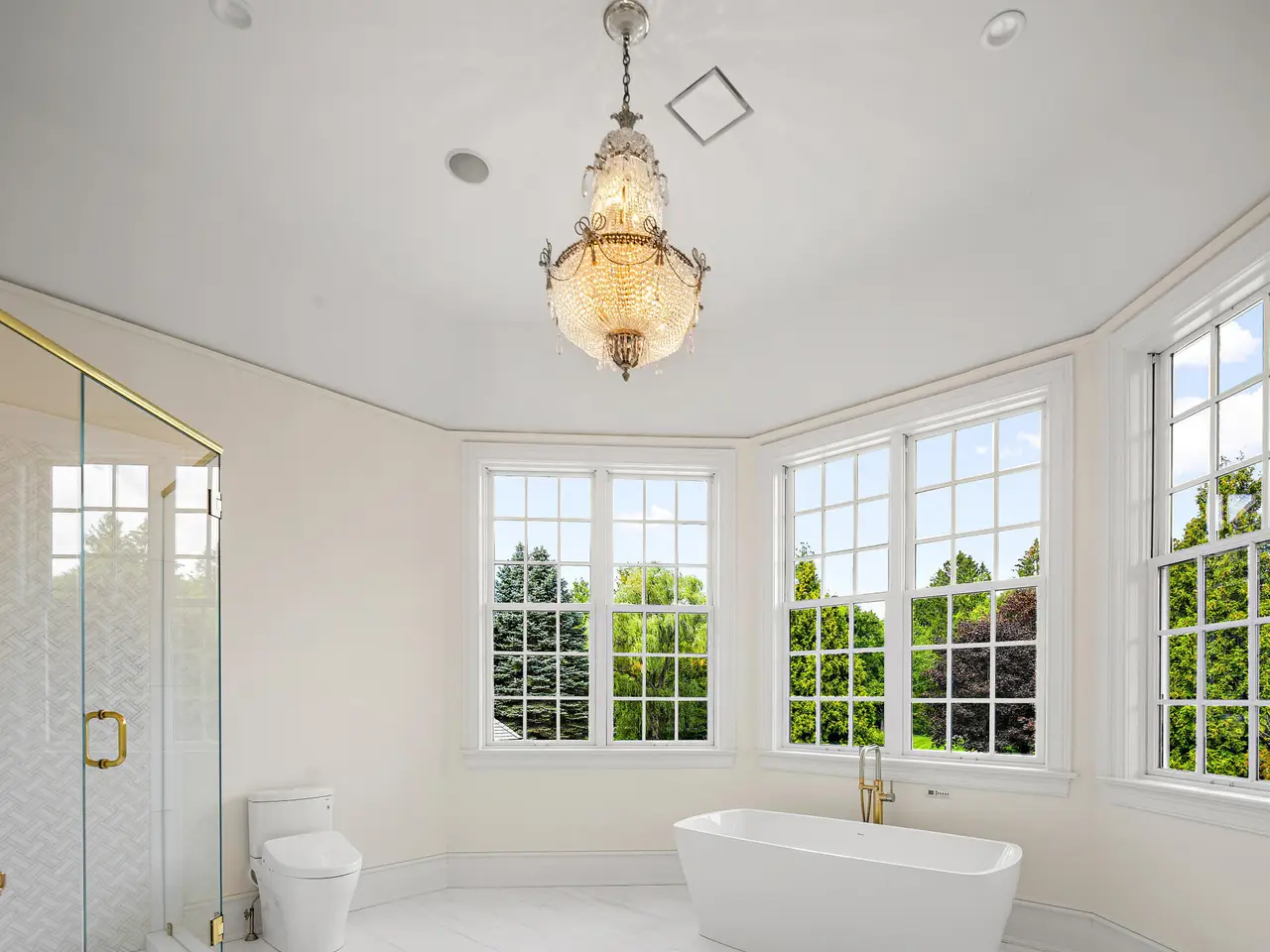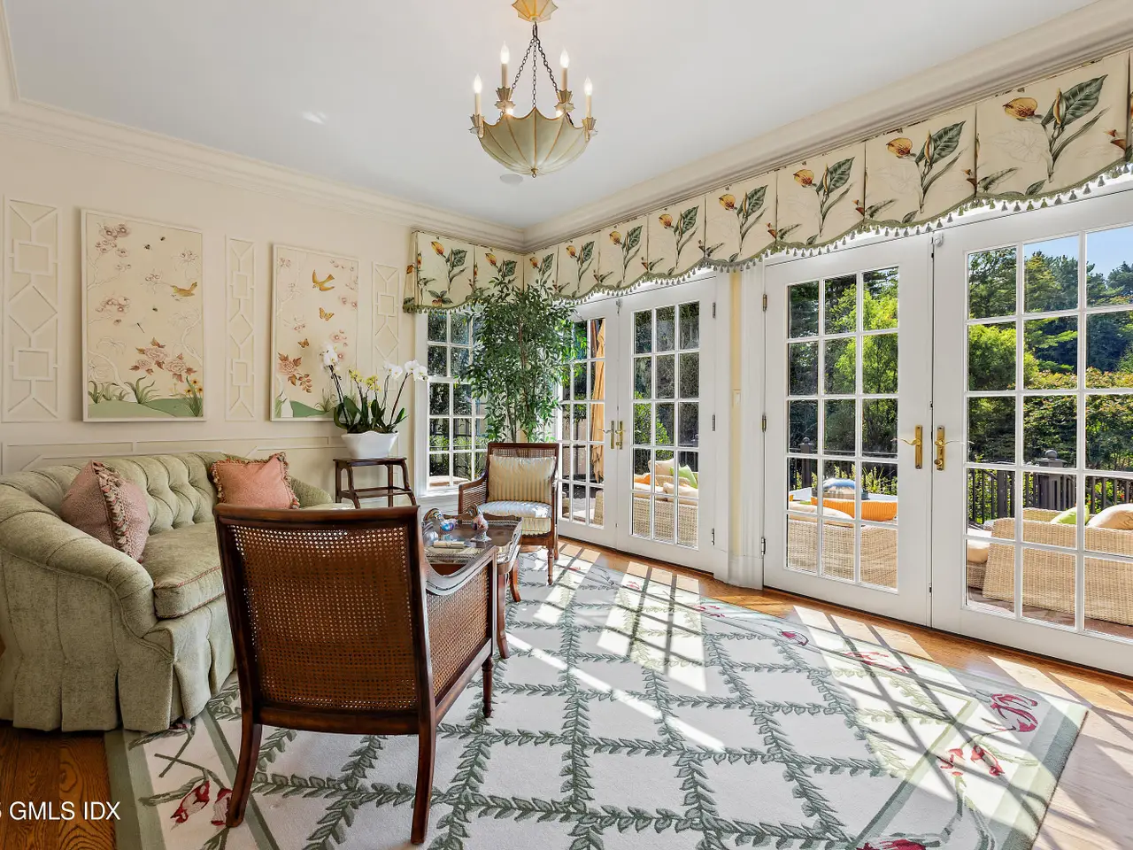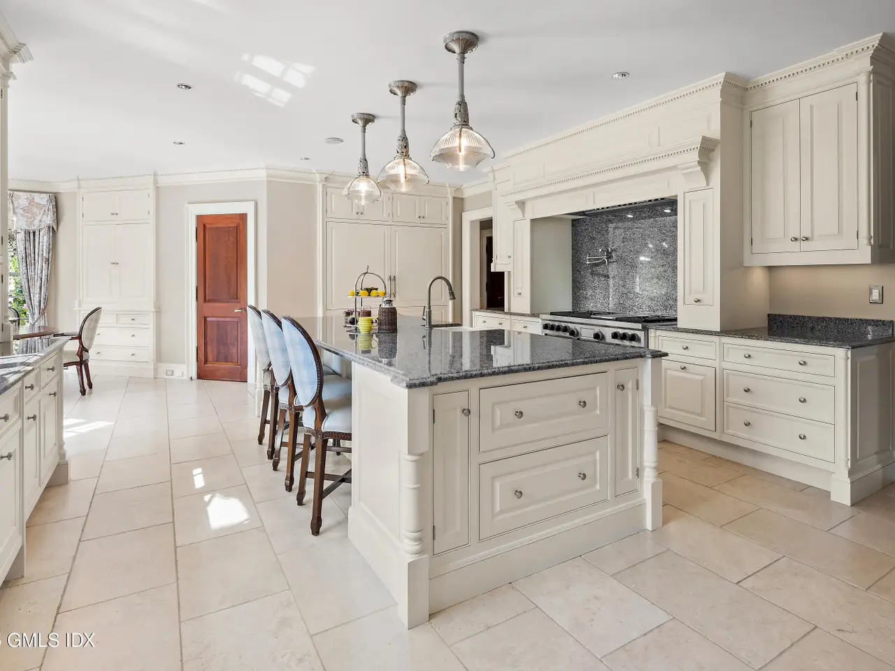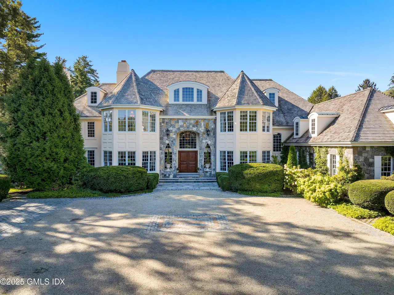 Set within one of Greenwich's most exclusive gated enclaves, this four-acre estate offers exceptional privacy, security, and refinement. With 24-hour staffed security and a backdrop of eight acres of conservation land, it provides rare seclusion. The grounds feature mature specimen plantings and curated gardens. Interiors include Venetian plaster walls, heated marble floors, and custom millwork. Highlights: a hand-carved library, dining room with Parisian lighting, reimagined primary suite with dual marble baths, steam shower, and climate-controlled wardrobe, plus a bespoke wine cellar and bar.