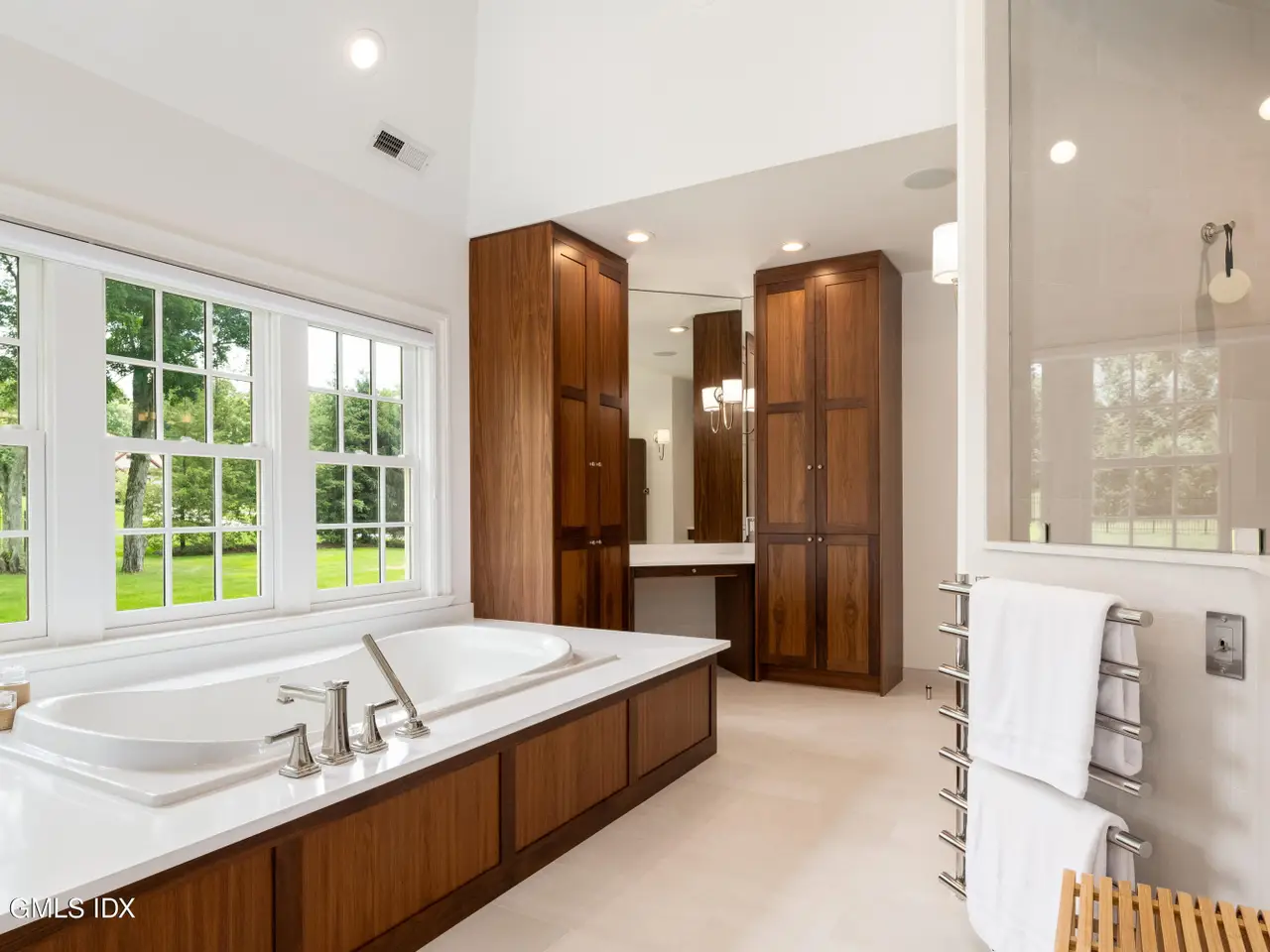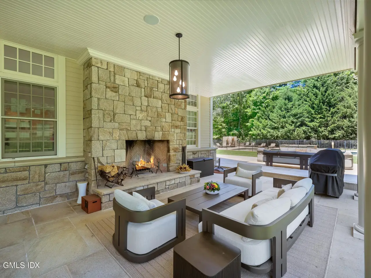 Elegance and luxury define this light-filled modern stone + clapboard home on 2 gorgeous acres close to town + schools. Designed by Rich Granoff, this 7 BR, 7.2 bath residence allows for spectacular indoor/outdoor living on expansive grounds w pool + spa, covered terrace with FP + firepit on a quiet cul-de-sac. Built in 2005 + recently redesigned by current owner, the open floor plan + very high ceilings impart a sense of airiness + spaciousness. Sunlight streams through the home - from the double height foyer to the lovely formal rooms + EI kitchen adj to amazing family room w vaulted ceiling + tall fp. Stunning Primary Ste w sitting rm + lux bath. 6 additional en-suite bedrooms. Wonderful LL media/game rm w high ceilings. 3 car garage w room for lifts. Generator. Greenwich at its best.