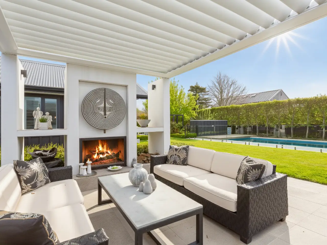 • Covered louvred patio with outdoor fireplace