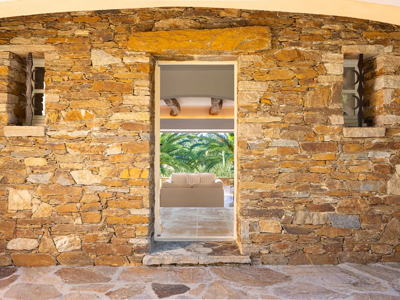 This reception area flows seamlessly onto the terrace overlooking the swimming pool and its local stone deck, offering a magical panorama.
