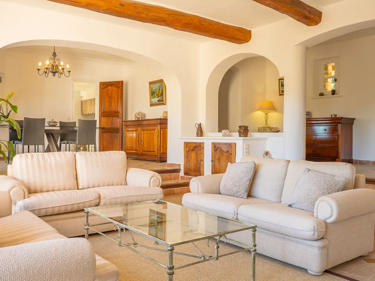 Located at the foot of the castle and the old village of Grimaud, this exceptional property will captivate you with its breathtaking views and quality construction. From its commanding position, this bourgeois mas of approximately 180 sqm, built on two levels, reveals its understated charm, blending Provencal authenticity with a relaxed lifestyle on a 3,900 sqm enclosed plot.