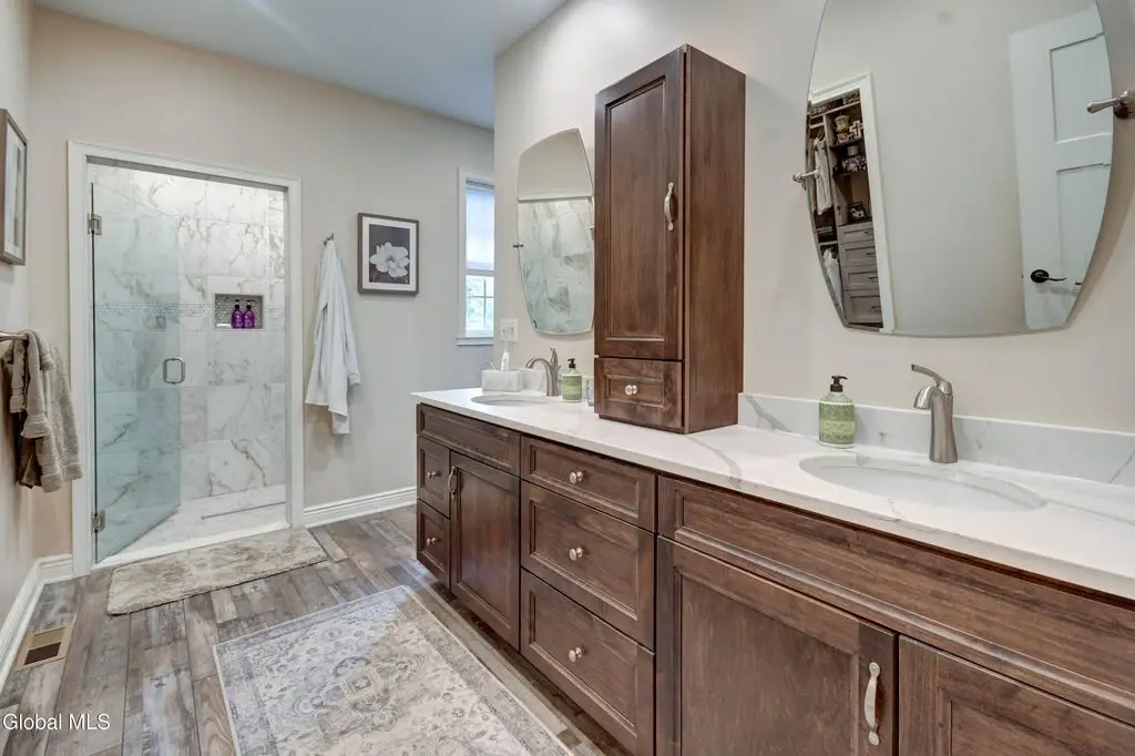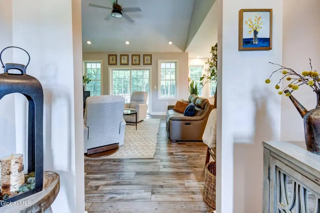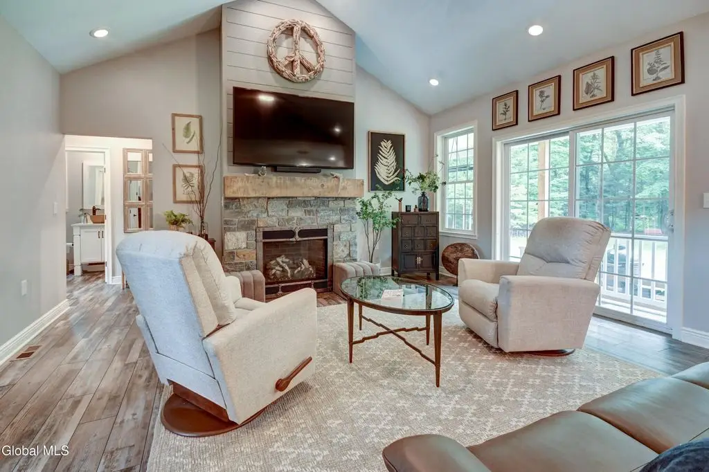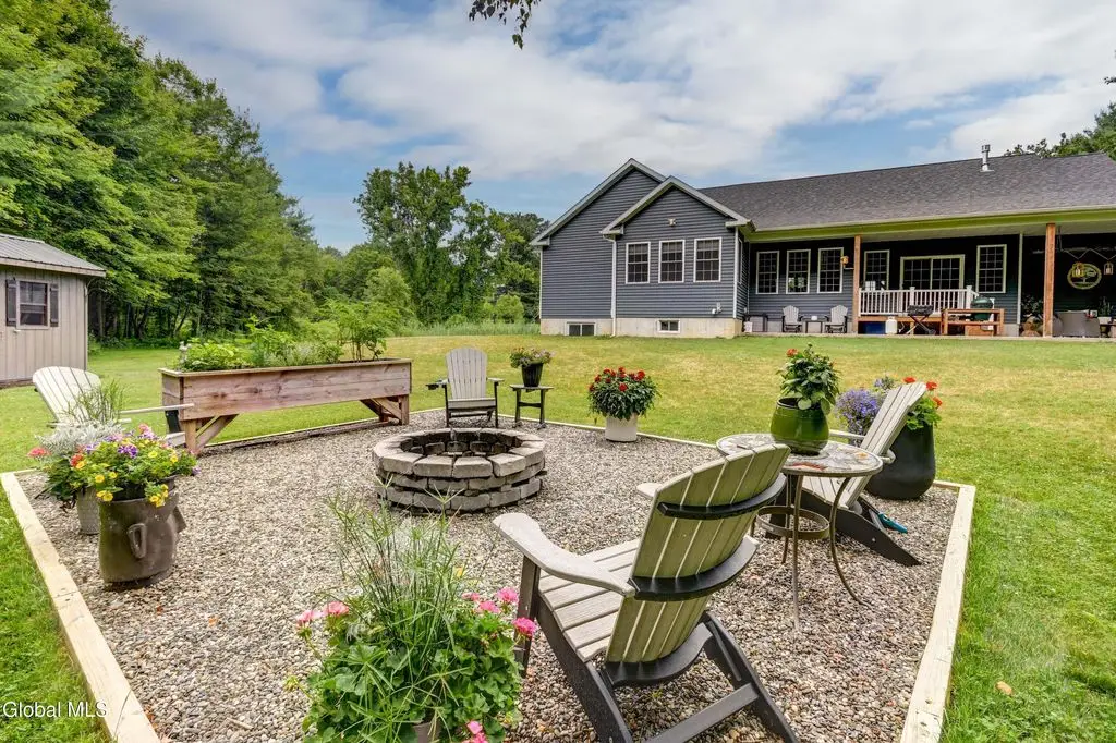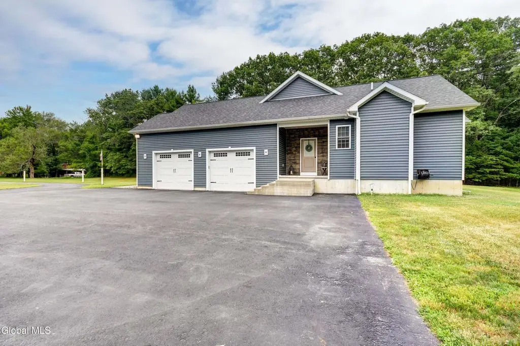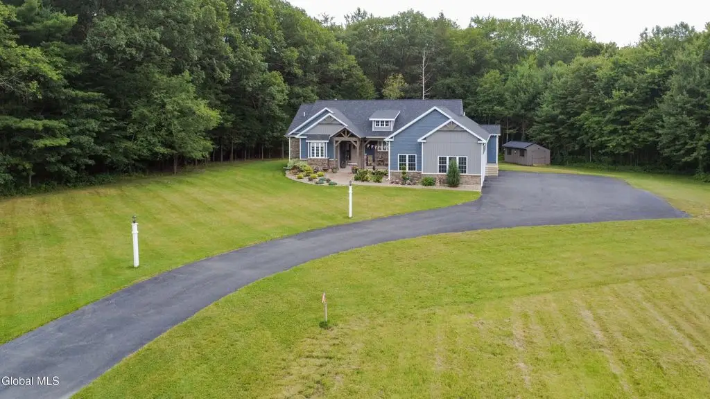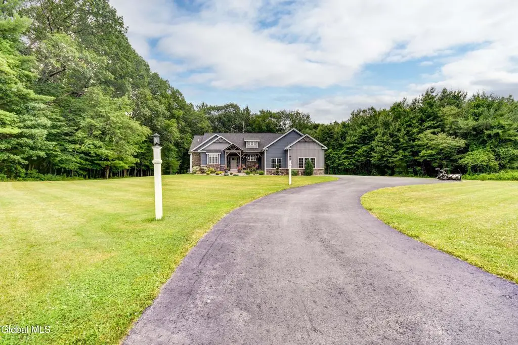Set on 1.5 private acres in the Guilderland School District, this 1,800 sq ft 3-bed, 2-bath custom Craftsman-style ranch offers comfort and space in a serene setting. A long private driveway leads to a charming one-story home featuring a warm living room with gas-burning fireplace, spacious eat-in kitchen, and generous bedrooms. Enjoy the convenience of public water/sewer and an oversized 2-car garage. Surrounded by trees, yet minutes to shopping, schools, and highwaysC/B?B=this home blends quiet living with everyday access. Love the outdoors look no further, while staying close to home. Featuring beautiful wildlife & nature just outside your windows. a Complete wooded surrounding, A gardeners dream, driving an abundance of beauty & nature in your home Environment. ft. Perennial Garden & ...
