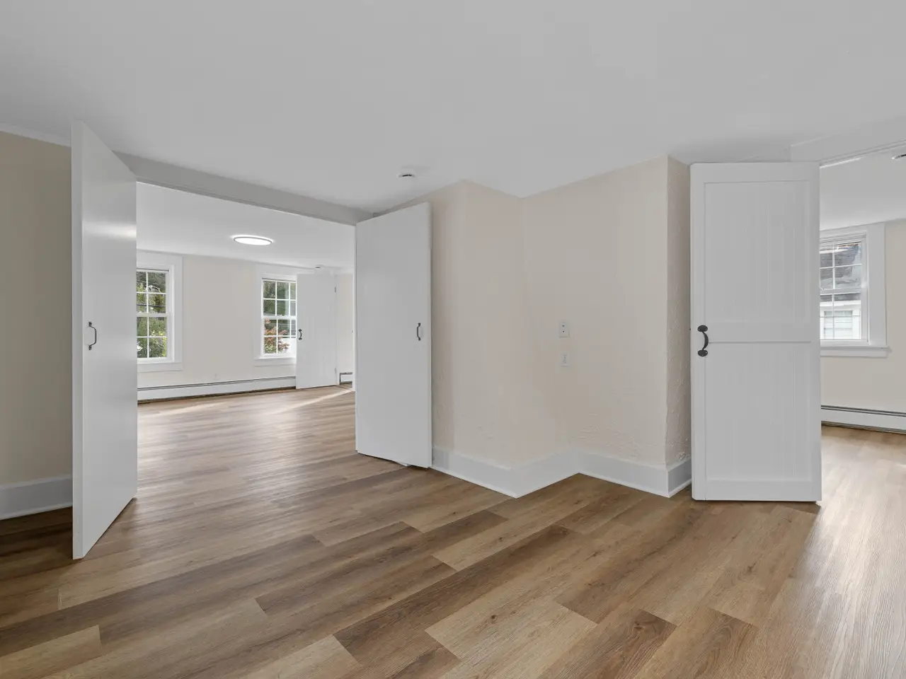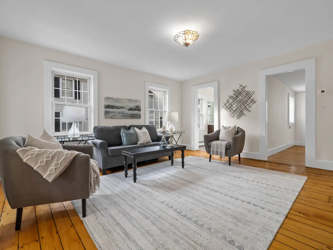 A rare downtown opportunity! This Historic Home located in the heart of downtown Guilford boasts 18 rooms, 2783 sq ft. This spacious legal 2-family home with 2 separate entrances features a larger unit that lives like a single-family home on 2 levels w/ 4-5 bedrooms, family room, dining room w/wood burning fireplace, eat-in kitchen, butler's pantry, media room, laundry room, 3 full baths & office w/ sliding doors to rear deck. A second, smaller income-producing unit on the 2nd level offers 1 bedroom, eat-in kitchen, living room, & full bath. There are 2-3 bedrooms & 2 full baths on the main level. First time offered for sale in nearly 75 years! This home was recently renovated & the interior has been freshly painted. Brand new architectural asphalt roof, new appliances, new programmable thermostats, two rooms w/refinished original wood floors & much more! The expansive, serene, level backyard setting supports wellness with 2 professionally installed golf putting greens. Perfect for entertaining, gatherings, quiet relaxation, gardening, sports or creative time in the workshop/studio. Conveniently located less than a block away from shops, community center, library, & especially the Guilford Green, the 7+ acre heart of the town. Walkability w/sidewalks offers a real community connection with downtown amenities such as coffee shops, restaurants & casual eateries. This home offers different flexible living spaces, use your imagination!! Whether you're looking for multi-generational living, in-law with separate entrance, an in-home office, rental income or a family vacation retreat, this property checks all the boxes and can be tailored to your needs. The .46-acre lot has an adjoining .13-acre perpetual exclusive deeded easement with a picturesque rock garden & a platform deck. This well maintained property has an automatic full-lawn sprinkler system with several zones, including the easement area. The home is connected to public water. Conveniently located within 1-2 miles to Jacob's Town Beach, Guilford Yacht Club, town marina with boat launch, Westwoods Trails, Yale Shoreline Medical Center & CT Shoreline East Rail with connections to Metro North & Amtrak & I-95 access. 96 miles to NYC or 150 miles to Boston by car. Well insulated attic, low cost heating history.