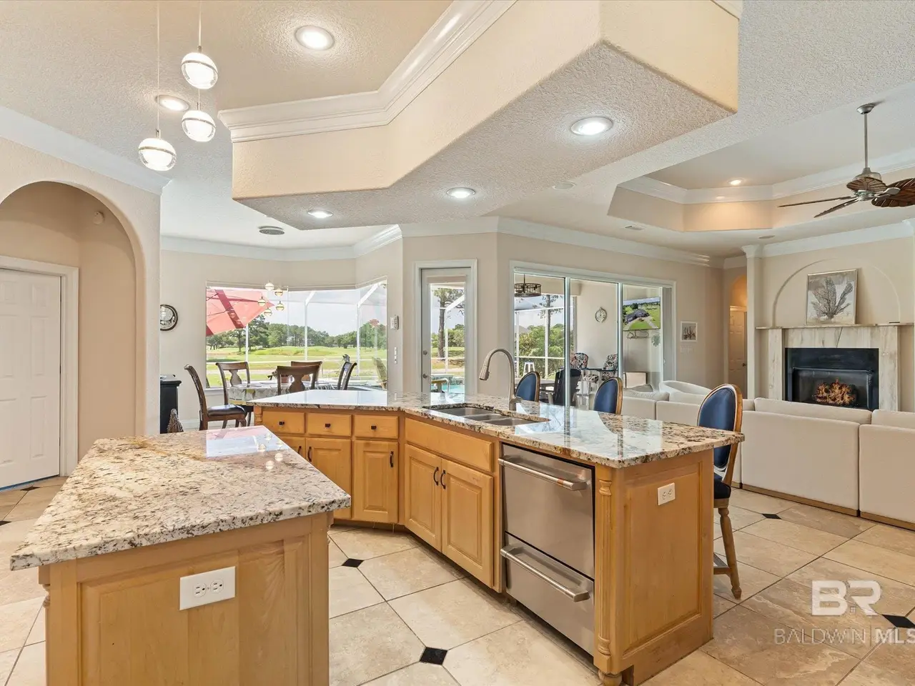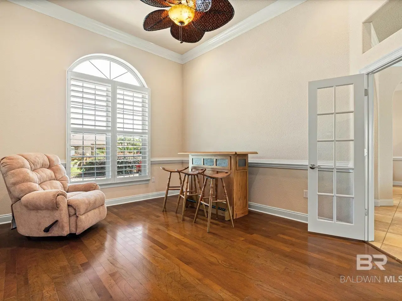 Understated elegance with a hint of modern accents is reflected in this home in the verdant golf community of Craft Farms in Gulf Shores, AL. Located in Cypress Bend Village off the 10th hole, the home showcases high ceilings, plantation shutters throughout, tile flooring, a separate formal dining room, and a large living room with a gas-burning fireplace. The kitchen offers newer quartz countertops and stainless-steel appliances that will make cooking and entertaining a dream. The primary bedroom and bath in the east wing of the house are both spacious and will easily accommodate all your needs; and the walk-in closets offer plenty of storage solutions. If work is what you require then retreat to the den/office through the beautiful French doors that also allow an easy view of the open living area. The additional bedrooms situated in the west wing of the home, will also provide additional space for you and your family. This home also includes a fully screened-in lanai, salt water pool and jacuzzi, and a water view that will please your senses. If you are an avid golfer then the garage was built with you in mind. Enjoy easy access to the top-rated golf courses with a separate golf cart entrance at the rear of the garage. The roof that was updated in 2020, and the AC's installed in 2019. The home is sold unfurnished and the mini fridge and ice maker will not convey. All measurements and dimensions are an approximation. Information deemed important to be verified by Buyer and Buyers Agentduring due diligence. Buyer to verify all information during due diligence Buyer to verify all information during due diligence.
