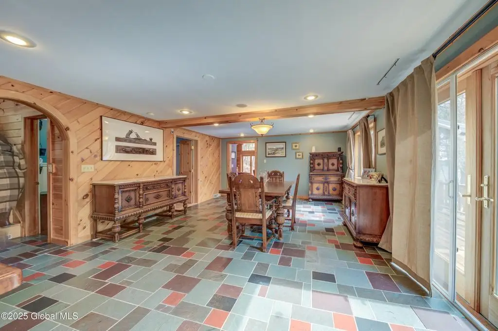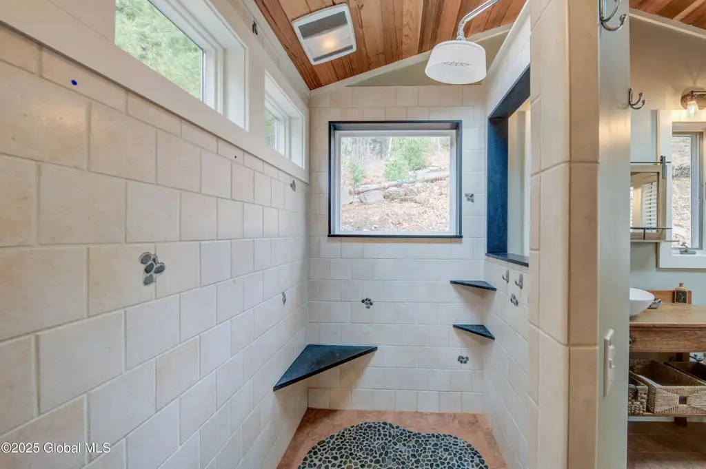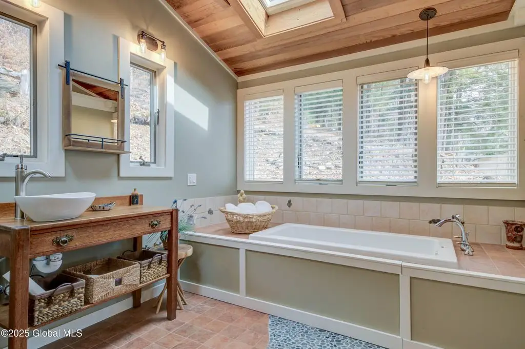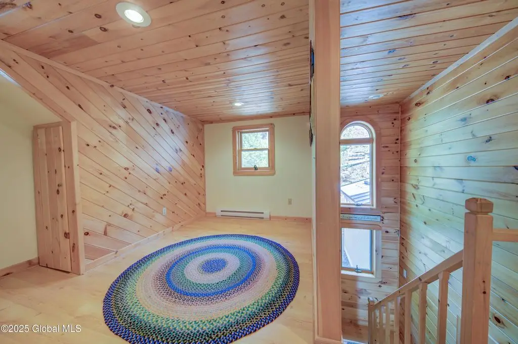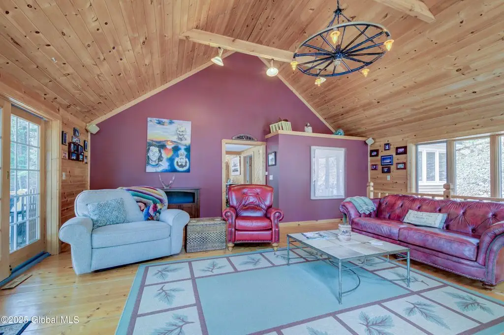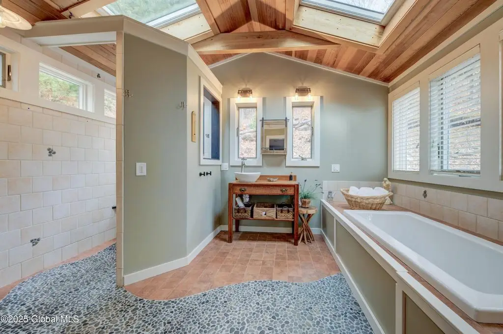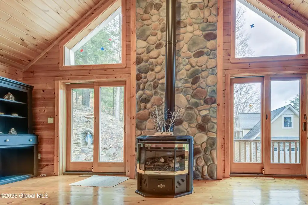Stone hearth & vaulted ceilings