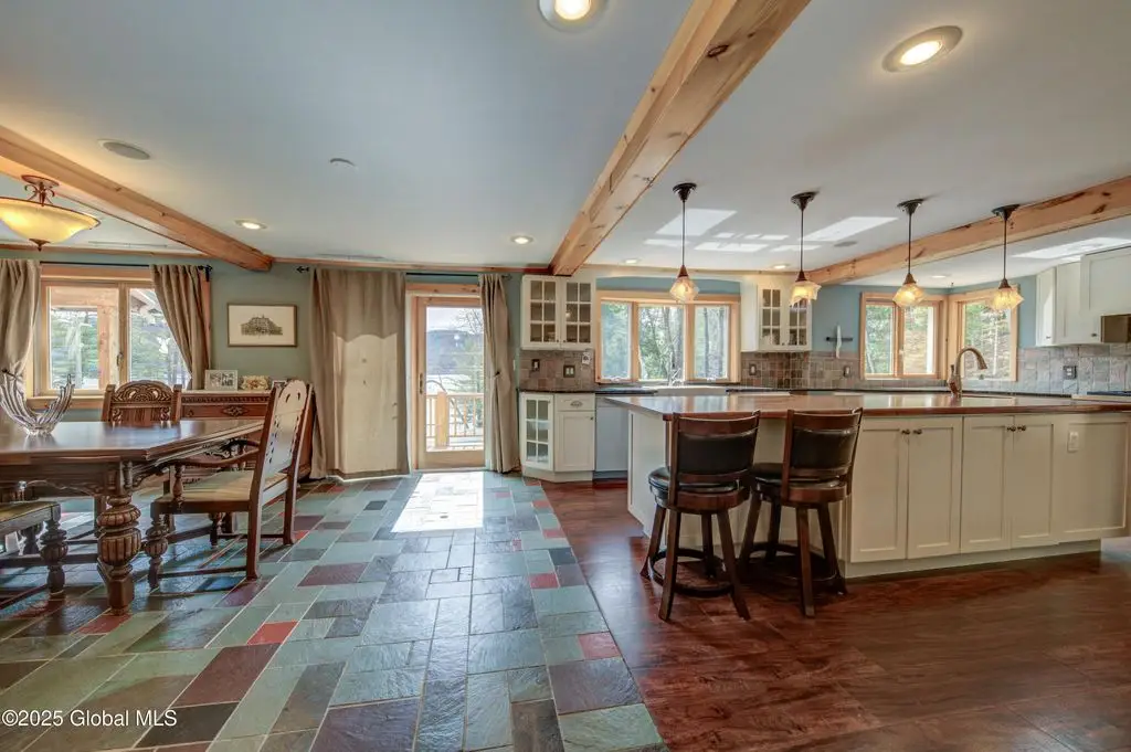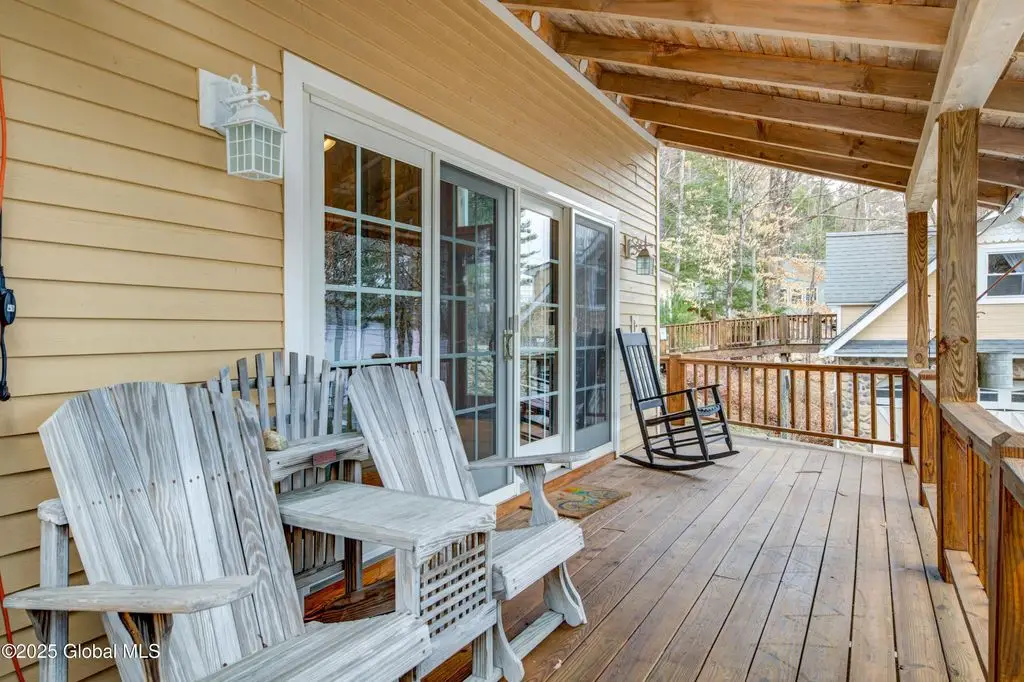 First class lakefront home w/120' on the Great Sacandaga! Property boasts high quality finishes & beautiful spaces, inside & out, with sophisticated Adirondack style. Gorgeous custom kitchen w/commercial appliances & lots of natural light. Vaulted ceiling & stone hearth in living room. First floor master w/luxurious bath featuring soaking tub & large walk in shower! Wrap around deck is accessible from multiple rooms. Enjoy lake views from most rooms of this amazing home. Addt'l BRs, full bath, & office space both upstairs and down. Laundry room on main level. Walk out basement w/additional finished space & workshop. Spacious guest room above det. 2 car garage (w/3 bays below for 'toy' storage!) Whole house generator. Adjacent 15 acre addt'l lot w/ 30' lakefront available for addt'l $165k