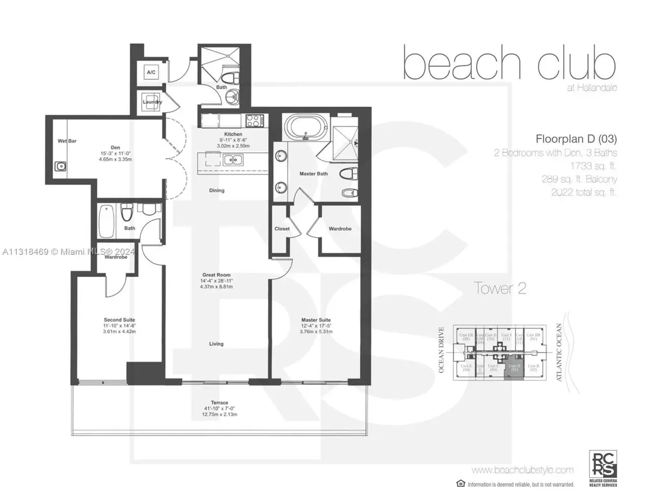 Spectacular South-East Ocean & Intracoastal views. 2 Beds +den/3 baths with 1,733 sq. ft. and 289 sq. ft. Balcony. Jacuzzi in Master suite, European style kitchen with granite counter tops, kitchen-Aid appliances, built-in closets & floor to ceiling windows. This is a 5 star resort style condominium with full time concierge, 24-hour valet parking and security. 50,000 sq. ft. spa and fitness center overlooking the Atlantic Ocean. Restaurant onsite with pool & beach Service. This unit can be rented 12 times per year with a minimum of 30 days.