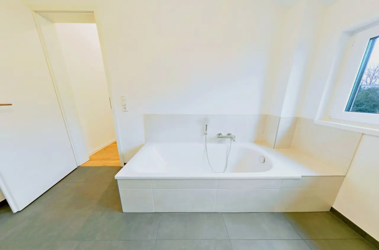 This architecturally appealing semi-detached house built in 2024 offers you modern comfort, energy-efficient construction and high-quality fixtures and fittings on a living space of approx. 157 m². The first-time occupancy of this new-build property promises you a high standard of living quality. The property is being built in a healthy timber frame construction and boasts a highly thermally insulated building envelope (energy efficiency house A+), which contributes to a balanced indoor climate and sustainably reduces energy costs. Natural building materials such as external insulation made from sheep's wool and wood wool meet the highest standards - even for allergy sufferers. With a total of four well-designed rooms, including three comfortable bedrooms and a well-equipped bathroom, the property meets numerous requirements for contemporary living. The spacious plot with an area of around 606 m² opens up a wide range of possibilities for individual garden design and impresses with a west-facing terrace area. Heating is provided by a modern air-to-water heat pump from the renowned Nibe brand, coupled with underfloor heating in all rooms - so you can enjoy comfortable heat distribution all year round. Windows with triple glazing and electrically operated privacy and light protection systems not only contribute to energy efficiency, but also to the pleasant atmosphere. Another highlight is the photovoltaic system with 20 modules and a total output of 7.8 kWp including inverter (8 kW) and bidirectional meter in the technical room. This not only protects the environment, but also reduces ancillary costs in the long term. The central ventilation system with an impressive 90% heat recovery rate also ensures a pleasant indoor climate, providing a constant supply of fresh air. The heart of the house is the open, light-flooded living and dining area with direct access to the terrace. The open-plan design allows the seamless integration of your individual kitchen planning and offers generous space for cooking, eating and relaxing together. The west-facing terrace extends the living area into the countryside and invites you to spend convivial hours in your own garden. The outdoor parking space on the property is already equipped with a cable connection for a wallbox - ideal for owners of an electric vehicle or those who want to become one. The fixtures and fittings are sophisticated and well thought-out throughout. Here you can live energy-efficiently, comfortably and in attractive surroundings. The combination of modern technology, sustainable construction and high-quality fittings makes this offer particularly attractive. See for yourself during a personal viewing and discover the advantages of this exceptional property. We look forward to your inquiry!