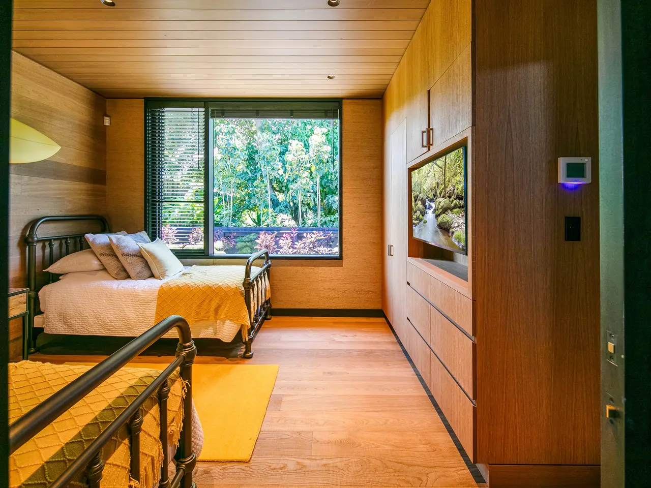 Wahi Lani, meaning 'heavenly place' in Hawaiian, embodies the essence of style meeting function in Hanalei Bay. This newly built residence, steps away from the bay's white sands, is a surfer's sanctuary designed for seamless access to surfing and other outdoor activities, offering an ideal blend of life and leisure.Wahi Lani showcases architectural expertise, with its U-shaped design and lanai, which connect seamlessly to the outdoors. The residence's heart is its central courtyard, framed by walls treated with Shou Sugi Ban, a traditional Japanese technique that imparts a lava-inspired texture with a rich charcoal hue.Situated in Hanalei, Wahi Lani is more than a dwelling; it's a gateway to a lifestyle immersed in natural splendor and style. Its proximity to Hanalei Town, blending seclusion with social engagement, offers a balance of serene living and exciting outdoor activities. Surrounded by natural wonders, as well as the amenities provided by nearby Princeville and the One Hotel at Hanalei Bay, Wahi Lani is a sanctuary for those who appreciate this balance.