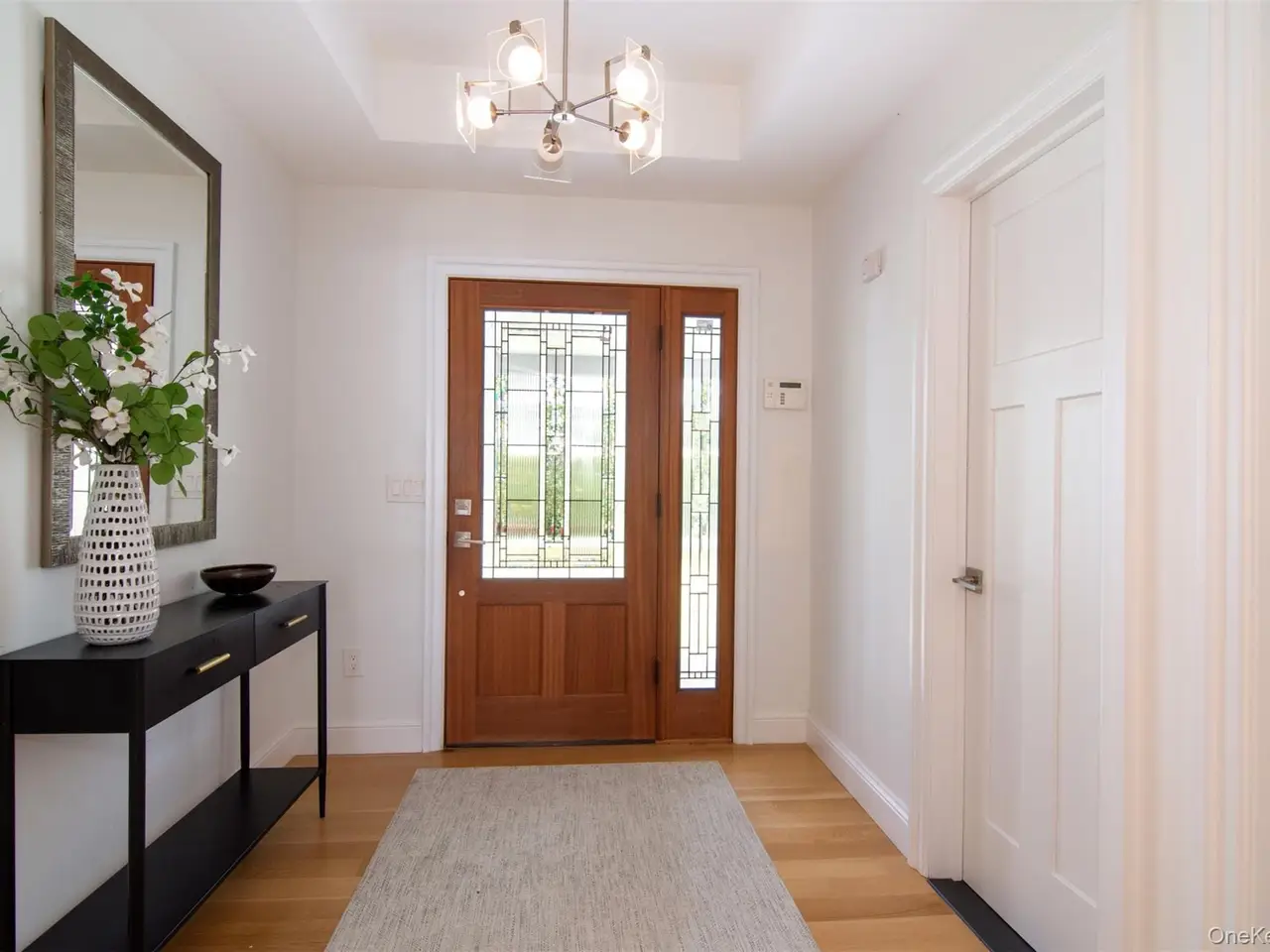 Your dream home in Hartsdale Estates is fully available. This beautifully reimagined and completely rebuilt modern Ranch offers the perfect blend of luxury, comfort, and everyday functionality. Set on nearly an acre in the sought-after Hartsdale Estates neighborhood, this home was thoughtfully designed for easy single-level living and exceptional entertaining. The bright and airy open floor plan features gleaming white oak floors, while oversized windows fill the spaces with natural light. At the heart of the home, a striking three-sided gas fireplace connects the spacious living and dining areas to a true chefs kitchen, complete with high-end Thermador and Fisher & Paykel appliances, ideal for hosting family and friends. The private bedroom wing includes three large bedrooms, two full bathrooms, and a convenient laundry area. The spacious primary suite feels like a personal retreat, featuring a spa-like bath with a soaking tub and walk-in shower, a custom walk-in closet, a cozy sitting area or home office, and even room for your own gym. The finished lower level offers a great bonus space for a family room, playroom, or media lounge, with plenty of storage and the option to add a fifth bedroom and bath. Enjoy your own backyard oasis with a heated Gunite pool, a full outdoor bath/dressing room, and a fully fenced yard that is perfect for entertaining, and making memories all year round. A spacious attached three-car garage completes this exceptional home. This move-in-ready gem has it all.