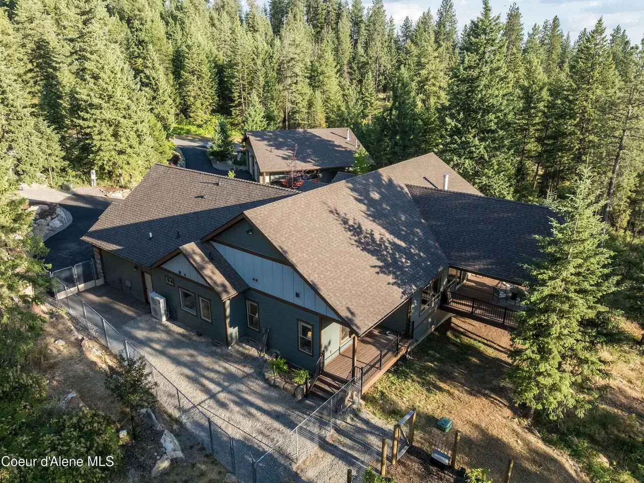 Peaceful Hauser Lake property with refined living await you in this custom 2625 square foot home with 3 bedrooms + bonus rm(4th bedroom), 2 full baths, & 2 half baths. Enjoy lake views from the kitchen, living room, and bedrooms, or relax on the covered deck that faces the Lake - perfect for morning coffee or evening sunsets. The gourmet kitchen features granite countertops, a large island, and opens to a spacious living area with a cozy fireplace. The primary suite includes a private deck & serene views. Outdoors, enjoy wooded privacy, a fenced garden, and dog run on 3.37 acres within a gated community, plus access to a private beach with dock. The heated/cooled bunkhouse is ideal for guests or workspace. A standout 36x40 finished shop features a wood stove, heat, and half bath - an absolute dream for hobbyists or storage. Located just blocks from Embers Pizza, this home combines elegance, comfort, and lifestyle.