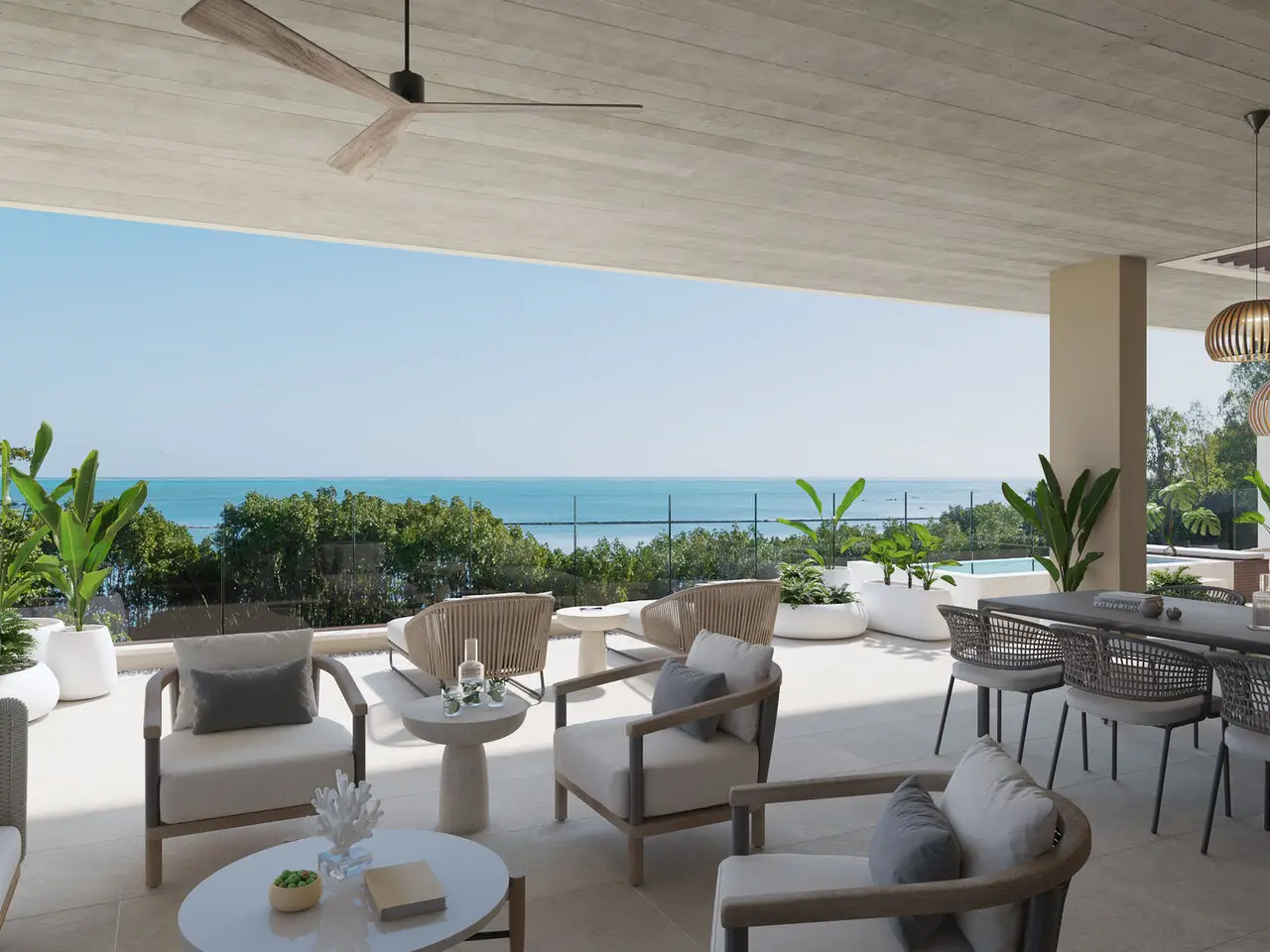 At the top of the Célimar residence, the penthouses offer an unparalleled level of luxury, space, and privacy within the iconic Azuri Ocean & Golf Village. Designed as true sky villas, these 4-bedroom residences combine expansive interiors, breathtaking 180° ocean views, and exceptional outdoor living spaces to create an elevated, light-filled lifestyle. A Private Sanctuary in the Sky Each penthouse is carefully oriented to capture the natural light and open vistas of the northeast coastline. With high ceilings, floor-to-ceiling glass openings, and a spacious open-plan design, the living spaces extend effortlessly onto a generous panoramic terrace equipped with a private swimming pool and outdoor kitchen — ideal for entertaining or relaxing with the sea breeze. Key Features: 4 ensuite bedrooms, including a luxurious master suite with walk-in closet and private terrace access Vast open-plan living, dining and kitchen areas, flowing seamlessly to the outdoor lounge Interior and exterior kitchens, ideal for alfresco dining and entertaining Private pool with ocean-facing deck Panoramic terrace offering uninterrupted views of the lagoon, sky, and horizon High-end finishes, natural materials, and modern tropical architecture throughout Exclusive Benefits: Direct access to all amenities of Azuri Ocean & Golf Village: • Beach club, restaurants, spa, gym, boat yard • The Nine golf course and clubhouse • Tennis & padel courts, kids' playground, event spaces Optional rental management and concierge services Eligible for foreign ownership under the Smart City Scheme Qualifies the buyer for a Mauritian residence permit Combining the comfort of a private villa with the convenience of a serviced residence, Célimar’s penthouses are made for those who value space, views, and refined living in an exceptional setting.