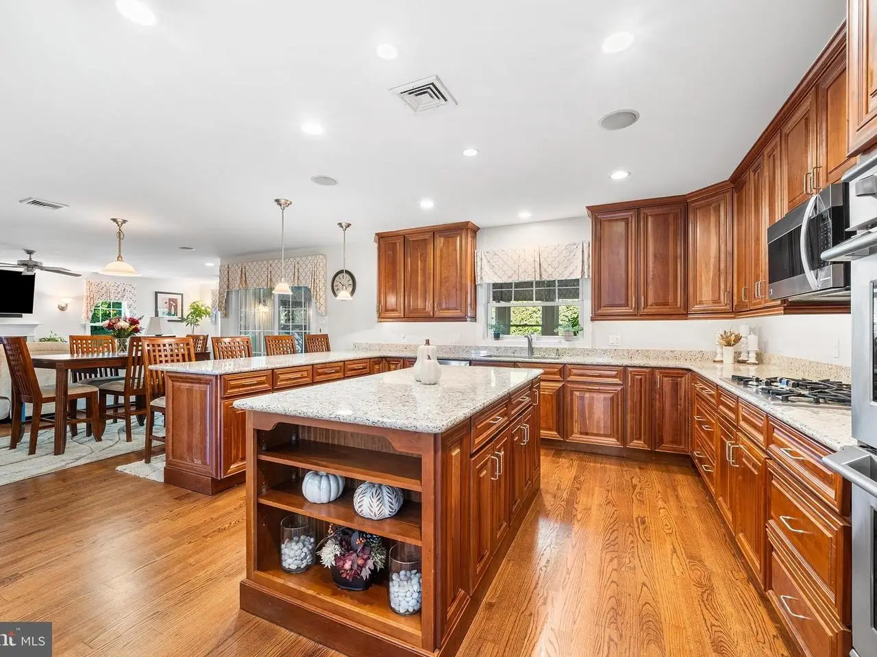 A HOME THAT HAS IT ALL!! Wonderful location in the desirable Haverford Township School District! Enter into the Center Hall from an inviting open front porch. To the right, a living room. To the left, a large, formal dining room with the ambience of a woodburning fireplace. Go straight ahead and find an open concept kitchen/family room. The large eat-in kitchen has abundant cabinetry , stainless steel appliances, gas range, microwave, double oven, dishwasher, garbage disposal, granite countertops, hardwood floors, pantry closet, an island and a large peninsula for casual meals as well as an outside exit to a side driveway. The warm and inviting family room with cathedral ceilings, gas fireplace flanked by oversized windows to allow plenty of natural light, power shades, loads of built-in cabinets and wine refrigerator allows for maximum relaxation. The first level in this house also boasts of an office, a powder room, and a 4 season sunroom with a gas heater. Exit the sunroom to chill on the back paver patio in the beautifully landscaped rear yard. Second level has 4 bedrooms, 3 bathrooms with double vanities, and a spacious laundry room for your added convenience. The primary bedroom has soaring cathedral ceilings giving it an amazing open feel, walk in closets, and an ensuite bathroom with a walk in shower, a separate jacuzzi tub, a heat lamp and a double vanity. There is a second bedroom with its own bathroom, and bedrooms 3 and 4 share a Jack and Jill bathroom. The basement is incredible! Beautifully finished with a home theatre screen. Fabulous entertaining space for parties or watching a movie or a game. There is also a powder room and wet bar as well as a large storage room. More amenities include replacement windows, beautiful landscaping, fenced yard. whole house generator, central air, 200 amp circuit breakers, gas hot water heater, gas hot water heat, bessler stairs to floored attic storage, many large closets, oversized shed, hardwood floors throughout and more! Close to shopping and transportation. Easy access to the Blue Route connecting you to both the turnpike and the airport. Be in Center City Philadelphia in 15 minutes. Walk to many restaurants! Not far from the Skatium, the newly renovated library, and the YMCA. AND, soon you will be able to enjoy a park setting directly across the street. Last but not least, the walkability of the desirable Brookline area of Haverford Township can't be overstated. You have to see this extraordinary brick and sided home that has everything you could want. See for yourself!!!