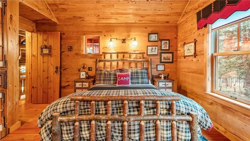 A masterpiece of timeless craftsmanship and serene natural beauty, Birch Point Lodge is an exceptional legacy estate nestled on over 39 acres of pristine Northwoods wilderness. With 2,000+ feet of shoreline, two islands, and both sunrise and sunset views over crystal clear water, this secluded haven offers unparalleled privacy and connection to nature. The lodge’s Great Hall evokes the spirit of grand Adirondack and National Park lodges—anchored by a soaring native Wisconsin granite fireplace, reclaimed wide-plank floors, and majestic log trusses beneath 25-foot ceilings. Thoughtful touches abound, from a built-in whiskey bar and nostalgic phone booth to custom cedar railings and antler chandeliers. The grand Dining Hall is wrapped in Marvin windows offering lake and forest views, centered around a bold timber frame and a handcrafted chandelier by blacksmith Dan Nauman. Custom birch paneling, reclaimed red pine floors, and a granite Rumsford fireplace bring warmth and elegance to every gathering. A chef’s kitchen pairs beauty with function: Sub-Zero and Viking appliances, a walnut-topped island, marble counters, and hand-forged lighting, all surrounded by windows and birch-paneled walls that blend the indoors with the forest beyond. Across its expansive layout, the home offers multiple porches, a cascading stone staircase, cantilevered timber stairway, and custom oak bookcases hewn from a tree once rooted on the land. Private bedroom suites feature reclaimed wood floors, birch built-ins, forest views, and stone-accented en-suite baths. A luxurious home spa includes a sauna, steam shower, and soaking tub overlooking the woods. The Lake Level offers a rustic family room with fireplace and inglenook, a game room, whimsical bunk room, copper-topped bar, wine cellar, home gym, and a lakeside changing room with marble showers and handcrafted lockers. From foundation to finish, Birch Point Lodge is a work of art—designed for gathering, grounded in nature, and built to last for generations. Experience the artistry. Embrace the serenity. Welcome home to Birch Point Lodge.