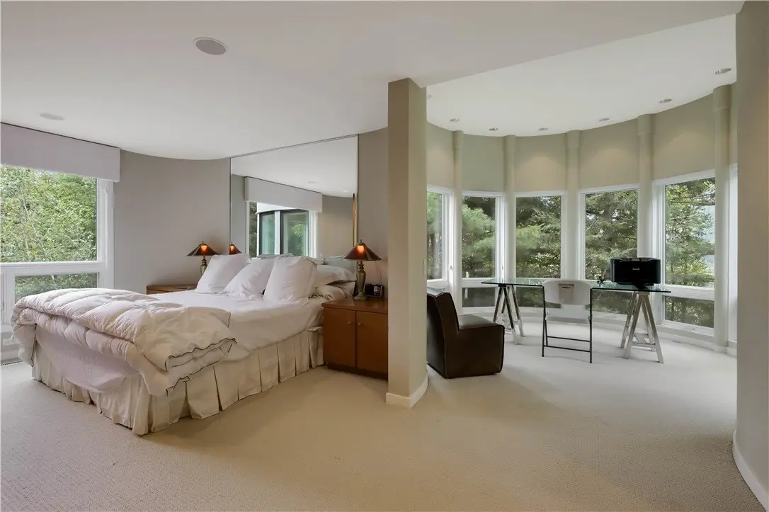 Architecturally striking Ken LaCoy-built home on Teal Lake. Set on 12+ acres with 700' of meandering frontage, this 4-bedroom, 5-bath residence is designed for relaxed lake living and entertaining, immersing you in the beauty of the Northwoods. Soaring ceilings and floor-to-ceiling windows capture tranquil wooded and water vistas, while the two-story great room, bathed in natural light, features a fireplace. The kitchen features custom cherry cabinetry, a wine fridge, ice maker, and high-end finishes. A surround-sound theater system enhances the family room experience, and a whole-home generator provides peace of mind. Additional features include an astronomy observation deck, a large lakeside 3-season porch, professionally landscaped gardens, a 2-car heated attached garage, and custom cabinetry throughout. Teal Lake spans over 1,000 acres with a maximum depth of 31 feet and is well known for excellent fishing-musky, walleye, bass, and panfish. With its scenic shoreline, natural islands, and pristine beauty, Teal Lake offers a peaceful Northwoods setting. This rare property blends exceptional architecture with the serenity of lake living-perfect for those seeking both quality design and an inspiring natural environment. No drive-bys, please. Showings by appointment only.