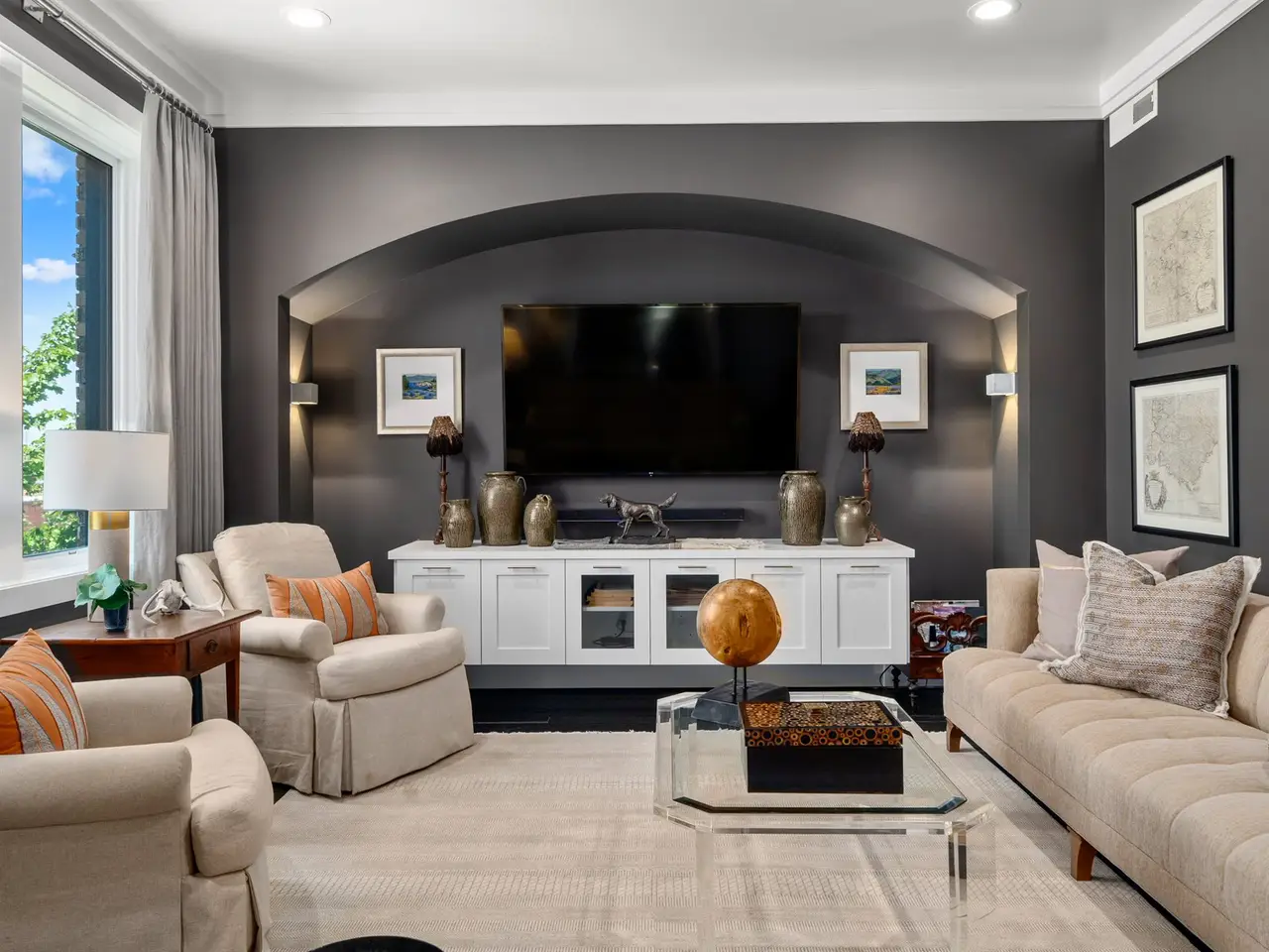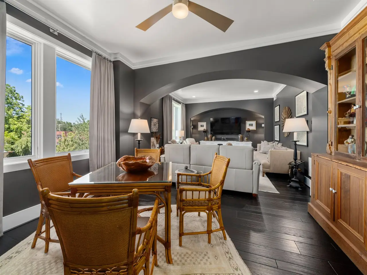 A unique opportunity to own a historic unit in vibrant Downtown Hendersonville once occupied by F. Scott Fitzgerald. Beautifully updated for today's living, the highlight of this home is the sprawling terrace overlooking downtown. Perfect for al fresco dining, entertaining guests, or simply relaxing and taking in the views. The terrace is a true extension of the elegant indoor living space which includes an open living room with fireplace and built-ins, a gracefully renovated kitchen and separate catering kitchen, media room, guest bedrooms and a fabulous primary suite with an impressive primary closet/dressing room. This charming, one-of-a-kind 4,880 SF residence includes two reserved parking spaces and a bonus 198 square foot laundry/utility/storage room steps from the unit. The prime location allows you to enjoy an abundance of restaurants, shops, and activities only available in the mountain town of Hendersonville.