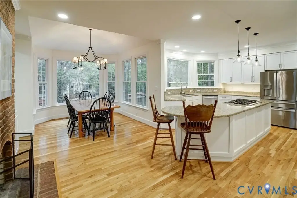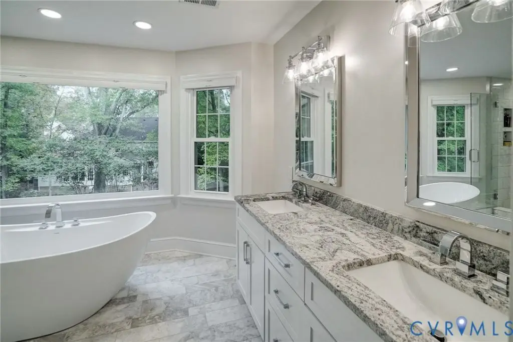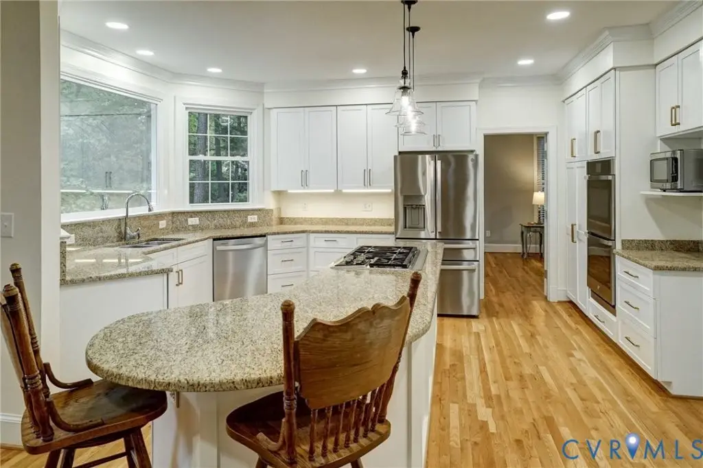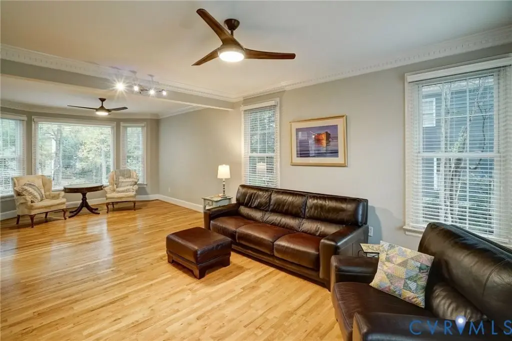 This Spectacular All Brick, 5 Bdrm, 4 1/2 bath Colonial offers elegance, thoughtful design and lifestyle adaptability with multiple flex spaces throughout. As you enter the large entry foyer with its vaulted ceiling, newly replaced energy-efficient Palladian window, and detailed dentil moldings, the home's design tone-one of timeless ease and sophistication-is immediately established and carried gracefully throughout. Elevated ceiling heights, intricate moldings, HDWD floors and expansive picture windows continue the open and refined feel in every room. Generously sized living room with French Door entry and beautiful wood floors. 1st floor BDRM with full bath is a great space for visiting guests. Centrally situated is the gorgeous and generously-sized kitchen- truly the center & heart of this home. Bathed in natural light with expansive picture windows, the bright and spacious Kitchen impresses with updated stainless steel GE appliances, a WOLF gas cooktop with hidden downdraft exhaust, custom white cabinetry, and modern LED recessed lighting. At its center, a stunning dual-sided FP, connecting the kitchen, breakfast nook, and dining room with warmth & charm. The 2nd floor offers 2 additional bdrms sharing a Jack & Jill half-bath, a 4th bedroom with hall-shared full bath, large Laundry Room with shelved storage closet, walk-up attic and Primary BDRM with luxuriously-updated en-suite bath. The finished walk out basement offers more bright and open spaces with lots of natural light great area for kids or a man cave with additional rec/family room with wet bar, full bath and direct garage access. The basement office space features a cozy gas FP and garage access. The oversized 2 car garage with wrap-around drive finishes this convenient & comfortable lower level. This home has been lovingly maintained and thoughtfully updated, offering a fluid, flexible layout that adapts effortlessly to your lifestyle in one of RVA's most desired neighborhoods! Award winning schools and access to interstates and shopping
